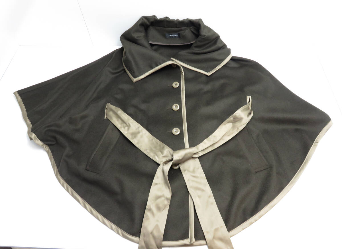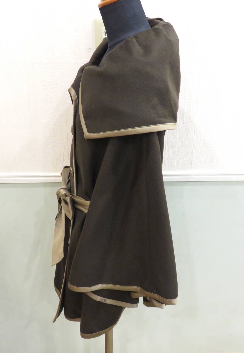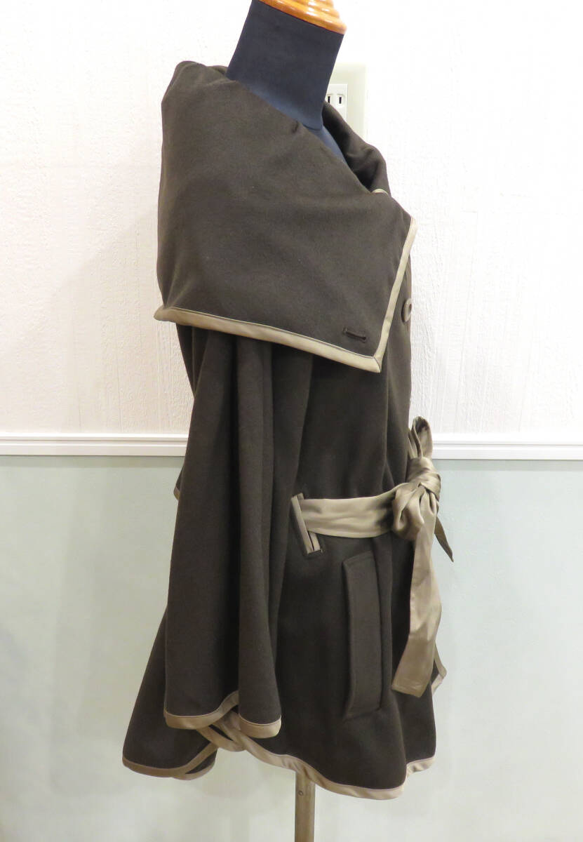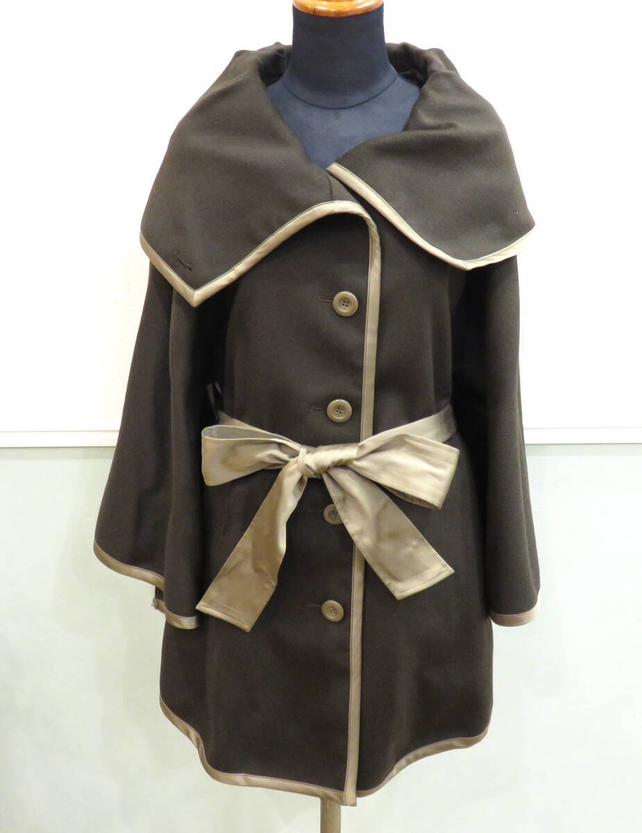 | ☆GRAND TABLE/グランターブル ウール ポンチョ バイカラー リボン付き サイズ9号 ダークブラウン系 羽織 コート アウター レディース |