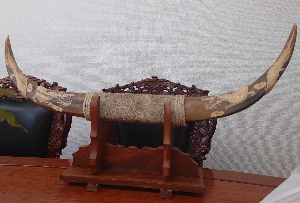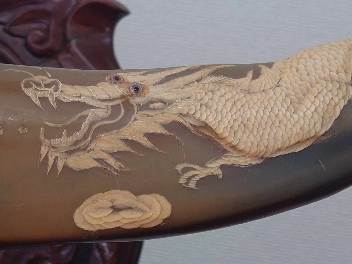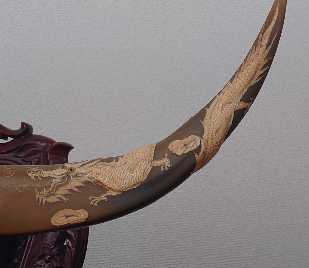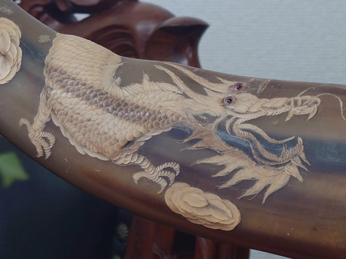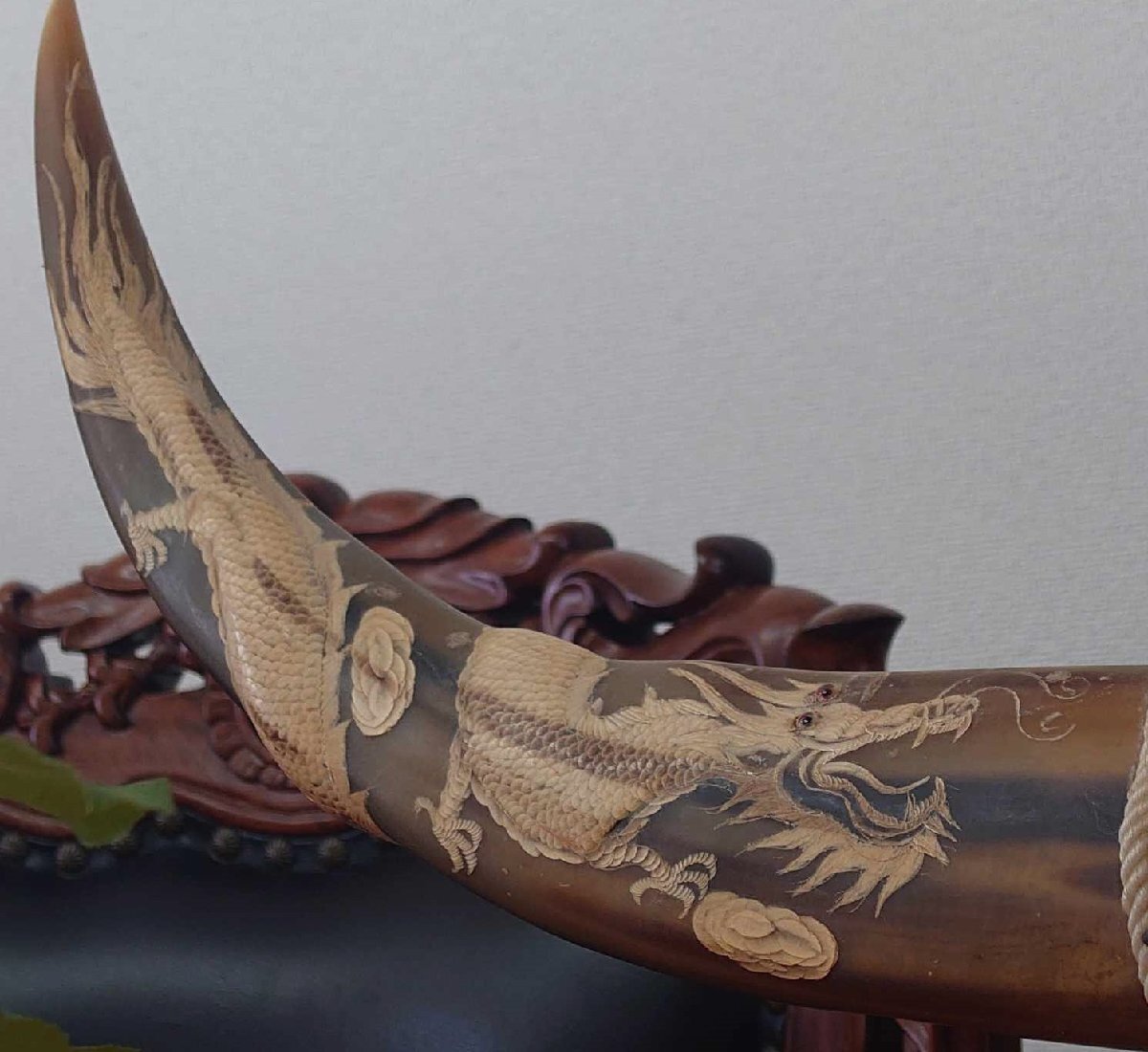 水牛の角 龍彫刻 センターは毛皮 置物 置台付き 幅880㎜| 出价者 | 信用 | 价格 | 时间 |