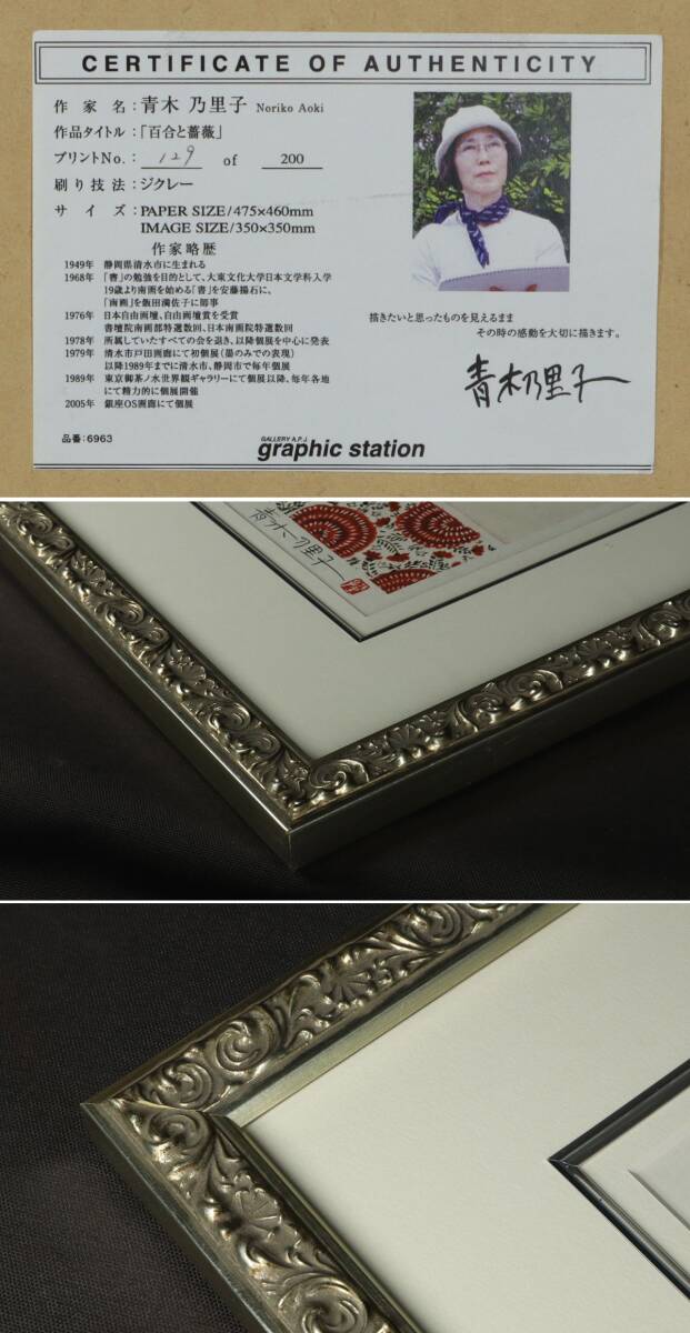 青木乃里子 『百合と薔薇』 ジクレー版画 129/200 作品本体には目立つようなダメージはありませんが、 経年による色の変色などはご了承ください。 サイズ:額 56.5cm×57.5cm、 作品 35cm×35cm (いずれもおよそ) 万が一贋作の場合はご返品対応いたしますので ご安心してご入札ください。 画像にある物が全てです。 ※撮影に伴う備品類は付属しません。 タイトルなど記載に誤りがある場合は恐縮ですが画像を優先してご判断ください。 土日は営業時間外ですのでご質問は平日にお願いします。 (返答可能時間 月~金曜日 10:00~17:00) ※いたずら目的の入札や落札後にお取引を放棄する 無責任な行為を防止するため 誠に不本意ではありますが、 新規IDおよび悪い評価が複数回ある方の ご入札は当方により取り消しいたします。 あしからずご了承ください。 |
