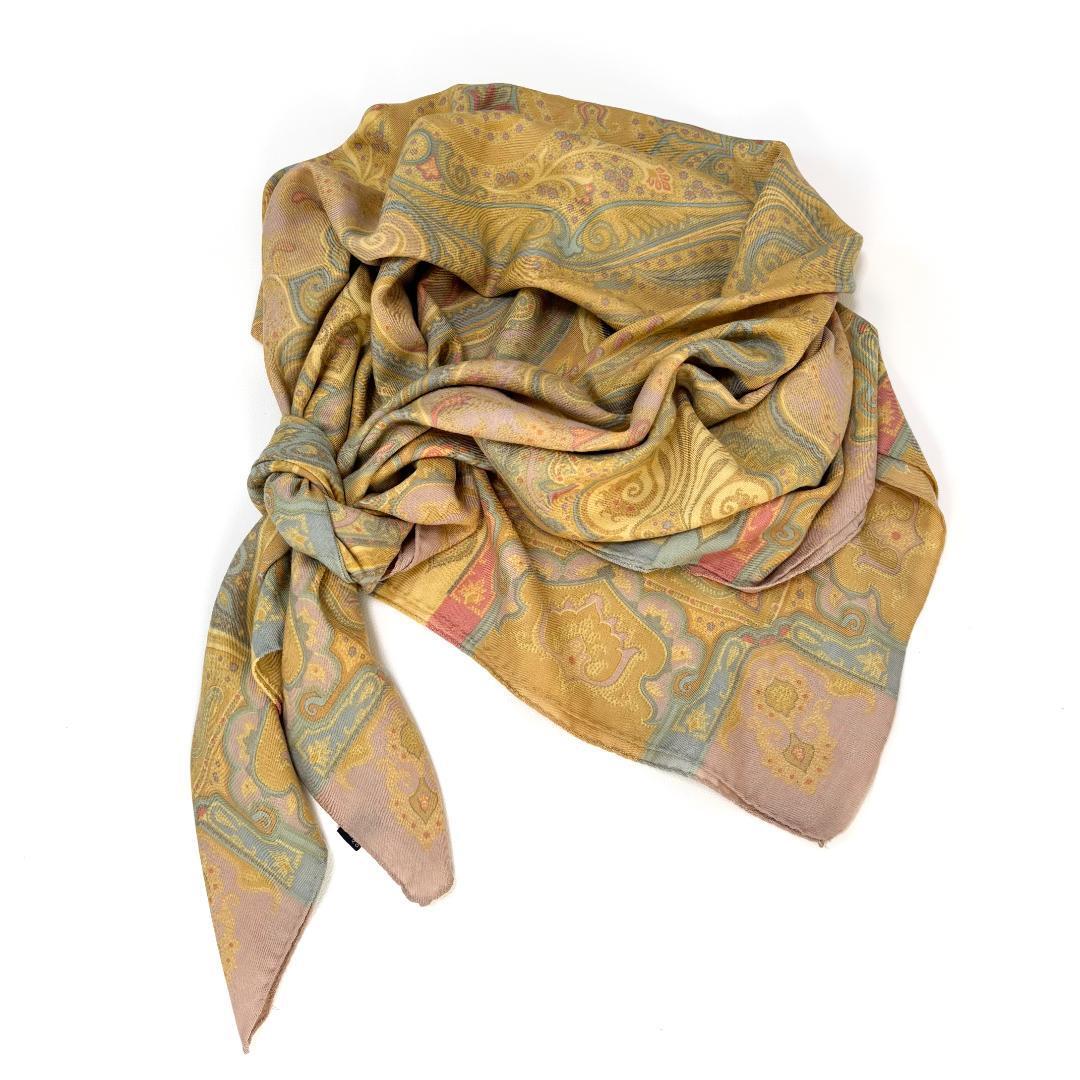 ETROのアイコニックなペイズリー柄ショール。 ウール70%×シルク30%の繊細な質感で、肩掛け・ひざ掛け・巻き物とシーンを選ばず活躍します。 大判サイズで上質な“もう1枚”としておすすめです。 ブランド名 エトロ/ETRO 商品名 プリント柄ウール&シルクショール 大判ストール カテゴリ ストール・ショール カラー ベージュ系マルチカラー(ペイズリー柄) 素材 ウール70%/シルク30% サイズ (平置き採寸 ) 幅131×131cm ※素人採寸ですので多少の誤差はご了承ください コンディション 一部に糸のほつれがあります。 全体的には美品でシミ汚れなどは見受けられません。 ※気になる方はご遠慮ください。 アイテム説明 エトロらしいクラシックなペイズリー柄が特徴の大判ショール。ウールの暖かさとシルクのなめらかさを併せ持ち、季節の変わり目にも重宝します。上品なベージュをベースに、グリーンやピンクの差し色が映えるデザイン。巻き方次第で印象が変わる万能アイテムです。 同ブランド現行の類似品は12万ほどです。 要素 デザイン:ペイズリー柄/素材感:軽く柔らかいウールシルク混/形状:正方形大判サイズ/透け感:なし/厚さ:中薄手/製造国:イタリア製 MADE IN ITALY シーン お出かけ 通勤通学 旅行 秋冬コーデ ディナー カフェ リラックスタイム その他 ・中古品・保管品につき完璧を求める方はご遠慮ください。 ・発送は折りたたみ、匿名配送予定です。 ・撮影小物は付属しません。_ / ※他にもたくさん出品しております。プロフィールをぜひご覧ください。 / _ メモ:C813-P305-1306782 |