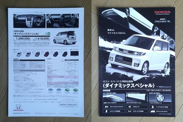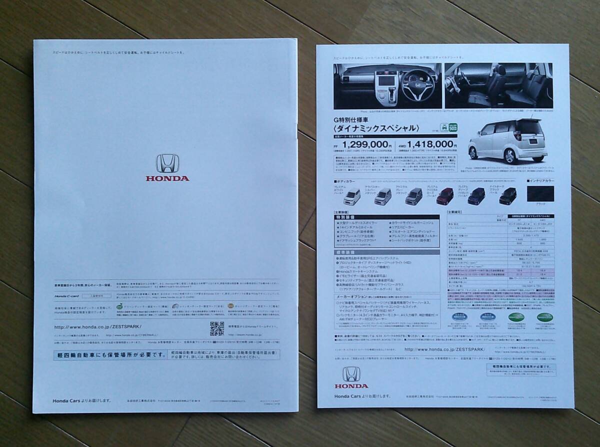| ZEST Spark ゼスト スパーク (JE1/2型後期) カタログ 2011年版 22ページ 特別仕様車カタログ/価格表付 ホンダ 軽トールワゴン | |||