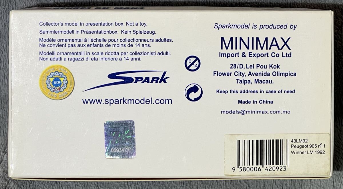 プジョー 905 92 ルマン 優勝 #1 D. Warwick/Y. Dalmas/M. (1/43スケール 43LM92)| 出价者 | 信用 | 价格 | 时间 |