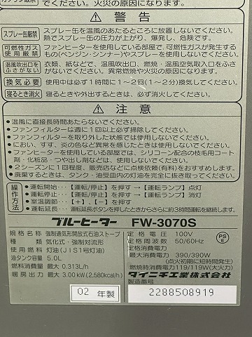 | *** B55★DAINICHI ダイニチ ブルーヒーター FW-3070S 2002製 石油ファンヒーター *** |