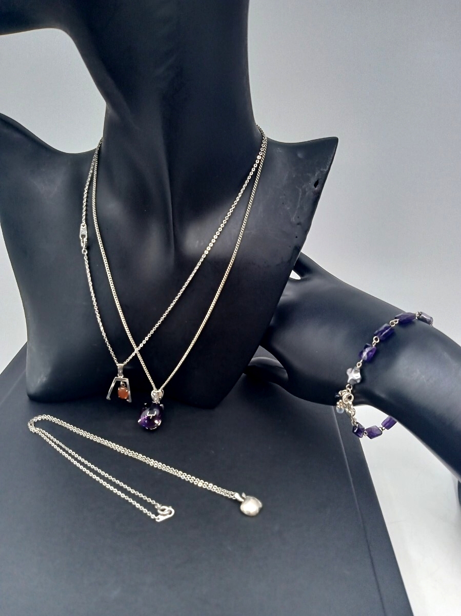 ネックレス ブレスレット 天然石 シルバーアクセサリー 4点セット アメジスト/カーネリアン| 出价者 | 信用 | 价格 | 时间 |