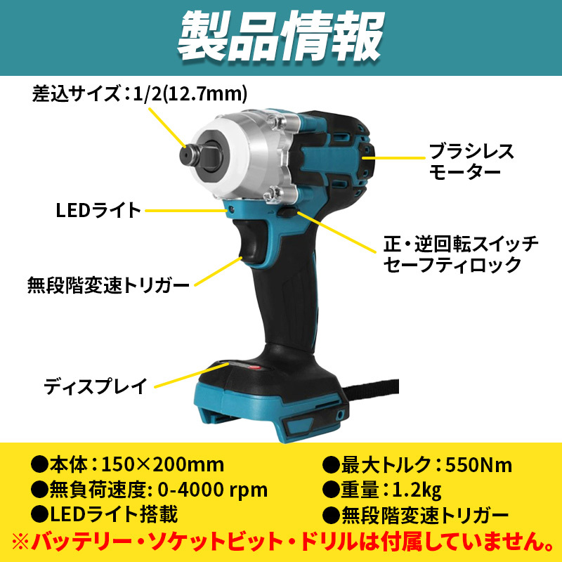 | インパクトレンチ インパクトドライバー 18V マキタ 互換 充電式 makita バッテリー 電動工具 コードレス 新品 無段変速 過熱保護 正逆転両 |