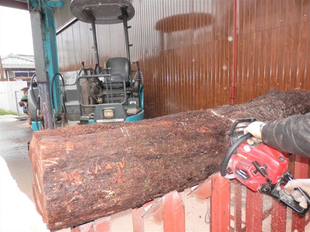 原木の取り扱い、搬出、選別等では重機を使っており、樹皮はげ等が有る場合も御座います。