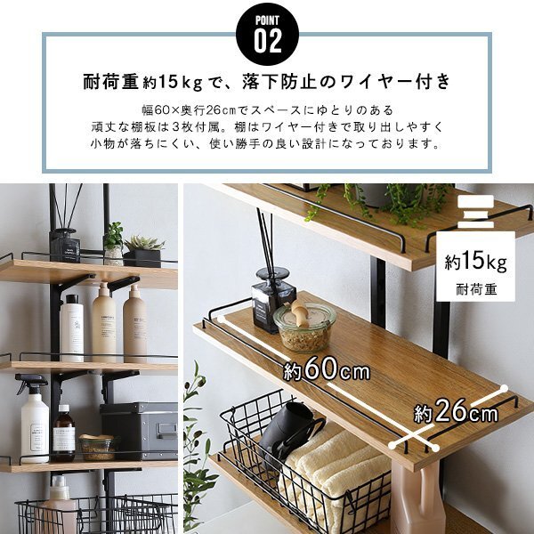 | 洗濯機上のスペースを有効活用!突っ張りランドリーラック3段 棚は引っ掛ける構造にネジで固定するので、簡単に落ちてしまう心配なし。 耐荷重は15kgとなります。 脚は取り換え式で平らな床でも、防水パンの上でも対応できます。 |