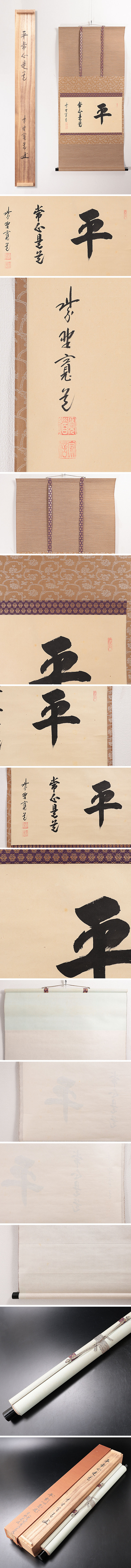 落ち着きを感じられる筆致で書かれた素晴らしい書です。 【平常心是道(へいじょうしんこれどう)】・・・「日常のありふれた心がそのまま仏道(悟りへの道)である」という意味の禅語です。特別な境地を求めるのではなく、日々の生活の中で揺れ動く心を平静に保つことが大切だという教えです。 ★商品は藤田寛道の作品である事を保証致します。 ※掛軸の同梱発送について※ 掛軸とお茶碗などの茶道具との同梱は、破損の危険性が非常に高いため、基本的に承っておりません。予めご了承下さいますようお願い申し上げます。掛軸同士やその他形状が近い商品に関しては同梱可能な場合もございますので、その際は当店よりお知らせ致します。 |