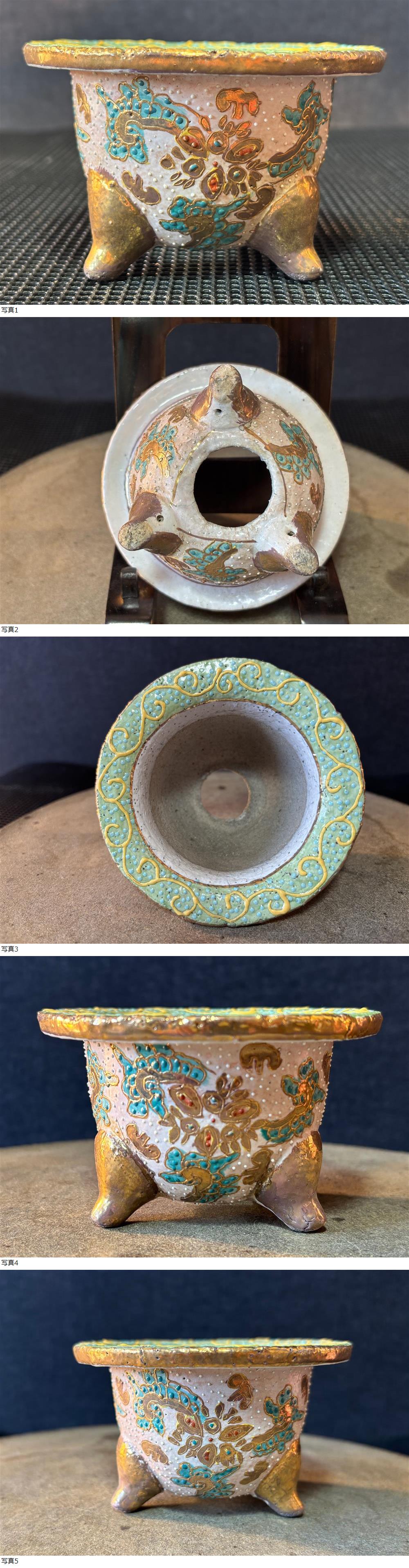 蘭鉢 盆栽 鉢 外縁 金縁 花模様