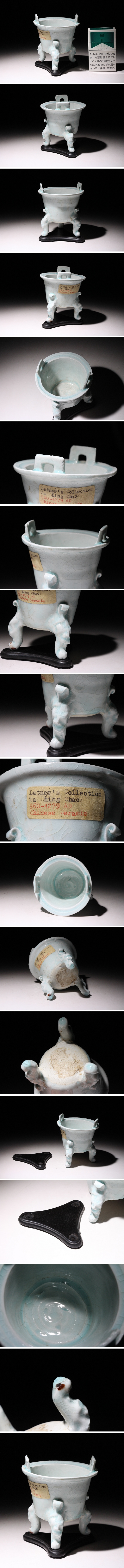 | ◇商品名◇ | 実業家コレクト放出 1137 宋時代 影青三足香炉 双耳 台座付 幅約8.5cm (検)影青釉 青白磁 香道具 香爐 唐物 中国美術 古玩 | ||