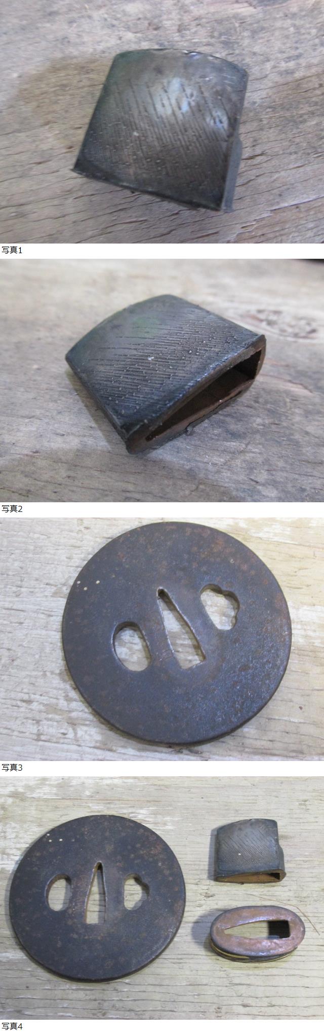 | 刀装具 國廣 鉄鍔 金被せ 縁 銀被せ はばき 3点 |