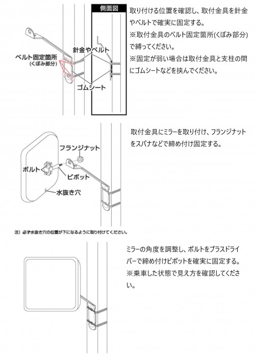 | セット内容 | ミラー本体×1 取付金具×1 フランジナット×1 タッピングビス×2 |