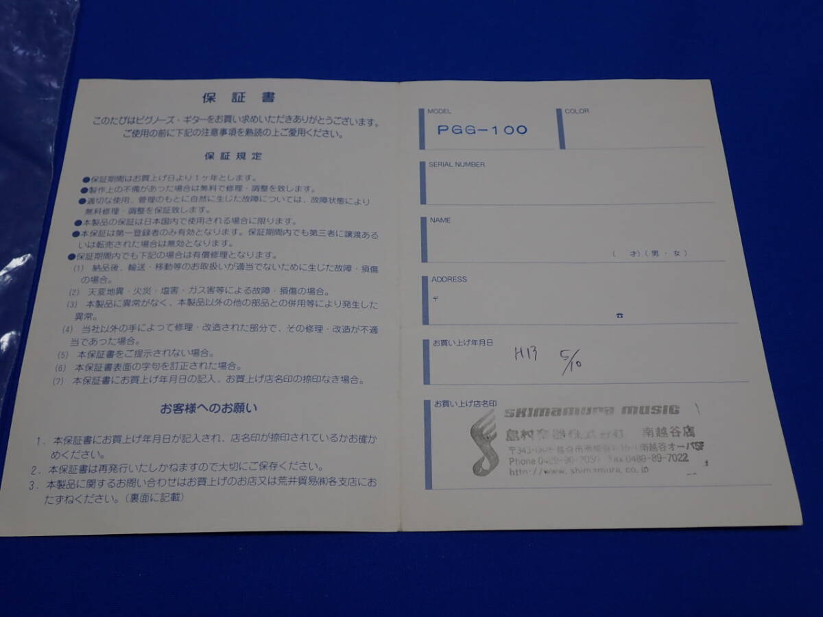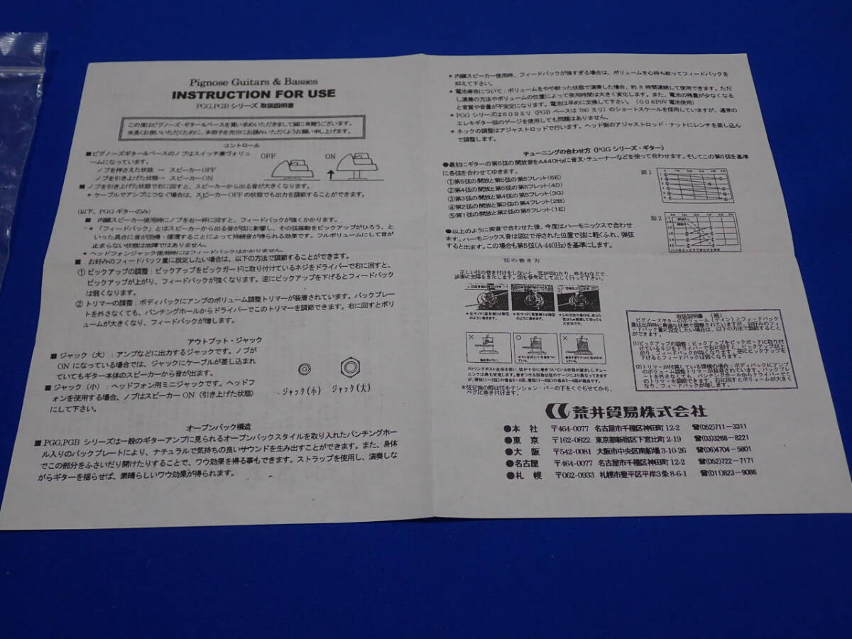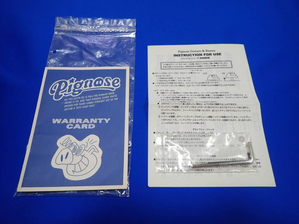 PignoseのギターPGG-100に付属していた「PGG, PGBシリーズ取扱説明書」と6角レンチ2種のセットです。PGG-100保証書もお付けします。