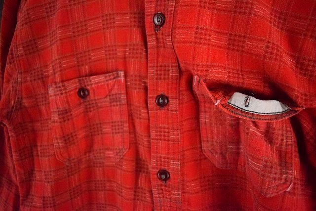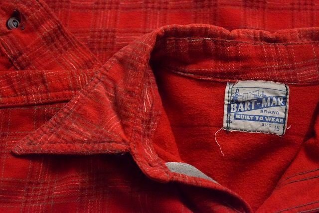 40's BART-MAR チェック柄マーブルボタン マチ付きライトネルシャツです。| 2点以上の落札で送料無料! |
