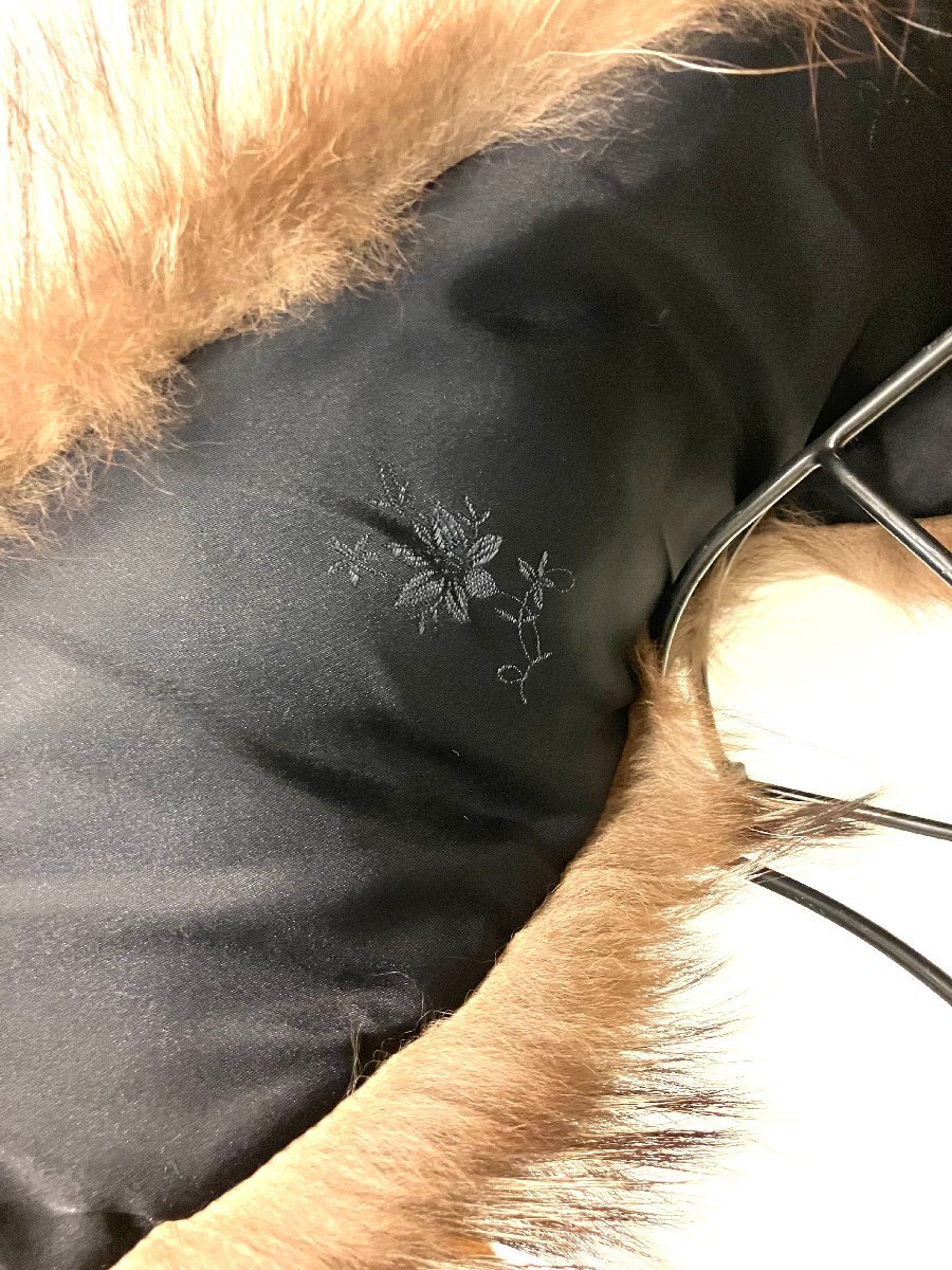 品名:qof.ZO815 FOX毛皮 襟巻き 和装用 15-20cm×120cm 花刺繍入り ブラウン×ホワイト