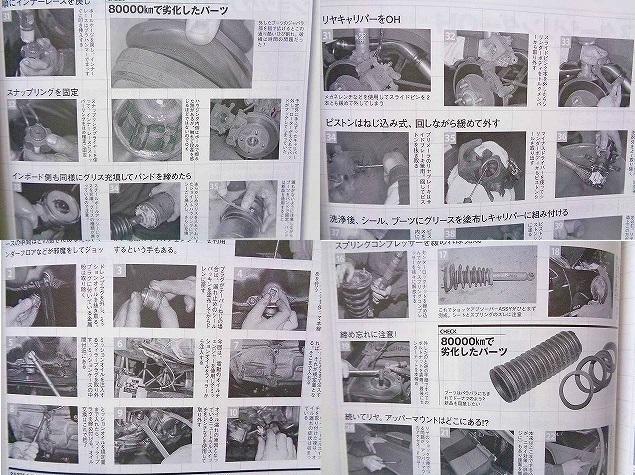 | 商品説明 | 商品に興味をもっていただき、誠にありがとうございます。 ◎「オートメカニック 2004年 2月号」になります。 2004年 2月 内外出版社発行 定価600円 横18cm×縦26cm×厚1cm 全242ページ 重量470g ◎管理番号 2410683 ◎コンテンツ *記事が多いので気になった箇所をピックアップしています ★日産P10プリメーラ/リフレッシュ作戦 ・モデル車両/日産初代P10プリメーラ ・総走行距離/83,000km ・1993年式/2リッター、5MT仕様 ・メカニック/鈴木伸一 ・現状チェック ・運転席がガタついていてシートの寿命のよう ・バッテリーの消耗、液漏れ ・乗り心地は最悪 ・トランクから異臭がする ・追突事故歴の形跡がある ・パワステフルードのリザーバータンクからの滲み ・飛び石によるウインドウの欠け ・ミッションオイルの滲み ・リフレッシュ整備メニュー ・20万キロまで快適に乗り続けるための先取り重点メンテ ・ドライブシャフトダストブーツ交換 ・FF車のウィークポイント ・7〜10万kmで交換 ・最初にミッションオイルを抜く ・ハブのナットを外しタイロッドエンドを分離する ・キャリパーやブレーキホースを取り外す ・ナックルと分離してドライブシャフトを引き抜く ・ドライブシャフトの分解作業 ・ブーツを外してみると酷い状態 ・スナップリングを外してインナーレースを取り出す ・ダイナミックダンパー、片方のブーツを外す ・新品のブーツを馴染ませグリスを充填する ・潰れがないようにブーツを被せてバンドを締める ・順にインナーレースを戻しスナップリングを固定する ・インボード側も同様にグリスを充填してバンドを締める ・ブーツ交換完了 ・ドライブシャフトを車体に取り付ける ・ハブを規定トルクで締める ・ショックアブソーバー交換 ・カヤバ/NEW SR SPECIAL ・センターロックナットを緩める ・スプリングコンプレッサーを装着する ・センターロックナットは新品を使用する ・スプリングコンプレッサーを締める ・パッド&ローター&ホース交換 ・ブレーキキャリパーOH ・ブレーキパッド残2mm ・ブレーキホースの接続を外す ・スライドピンを緩める ・ブレーキパッドを取り外す ・シリンダーボディ、トルクメンバー、ディスクローターを取り外す ・シリンダーボディからシール、ブーツを取り外す ・パーツを洗浄する ・OHキットを組み付ける ・シール、ブーツにグリースを添布する ・ブレーキローターを取り付ける ・トルクメンバーを取り付ける ・ブレーキパッドをトルクメンバーに組み付ける ・シリンダーボディをかぶせる ・ブレーキホースを接続する ・リヤキャリパーをOHする ・ピストンはねじ込み式、回しながら緩めて外す ・洗浄後、シール、ブーツにグリースを添布する ・キャリパーに組み付ける ・ブーツを確実にはめ込み、ピストンを戻す ・ピストンの切り欠きとパッドを合わせる ・マスターシリンダーOH ・10万キロ目前の定番メンテ ・エンジンマウント交換 ・エンジンからの振動、騒音が多い ・タイロッドエンド交換 ・常にストレスがかかる部分 ・ミッションオイル漏れ修理、交換 ・ニュートラルスイッチ付近から漏れを発見 ・破損パーツや不具合部品はキッチリと修復メンテ ・フロントグリルのファスナー交換 ・プラパーツは経年劣化でモロくなる ・右フロントフェンダー交換 ・左リヤコンビネーションランプ交換 ・ヒートガンでブチルゴムを温める ・ドライバーズシート交換 ・左右のガタツキが気になる ・レール自体にガタがある ・トランク異臭解消 ・消耗品、定期交換メンテ ・エンジンオイル交換 ・オイルエレメント交換 ・スパークプラグ交換 ・エアフィルター交換 ・パワーステアリングフルード交換 ・フューエルフィルター交換 ・タイヤ交換/POTENZA G3 ・ホイールアライメント調整 ・マフラー交換、他 ★ターボの効率アップ加工 ・ダイハツ L200系ミラターボ ・インペラとハウジングのすき間を埋める ・コンプレッサー効率を向上させる ・コンプレッサーハウジング ・ジェットエンジンのシェラウドにも ・コンプレッサーの効率向上特性 ・ピストンやヘッドの耐熱コーティング ・コーティングの目的 ・耐摩耗、潤滑 ・耐熱、断熱 ・耐食、耐薬品 ・電気絶縁 ・アブレーダブル溶射 ・溶射の作業工程 ★R32タイプM/復活プロジェクト 第11回 ・左フロントタイヤのズレを修正 ・調整式テンションロッドに交換 ・アライメント ◎オーバーホールとは? (トヨタによる定義) ・指示されたアッセンブリー部品の点検、調整、修理を目的に、全部品の機能が点検できるまでに分解し、全部品を点検のうえ新部品または旧部品を用いて正規の機能状態に組付け、必要な調整を行う作業。 ◎詳細 「日産P10プリメーラ/リフレッシュ作戦」についてはモノクロ33ページにわたって特集されています。P10プリメーラの足回りを中心とする各種オーバーホール作業工程が写真付きで詳しく解説されています。旧車の整備をご自分でやられている方やプロ業者様におすすめの内容とな