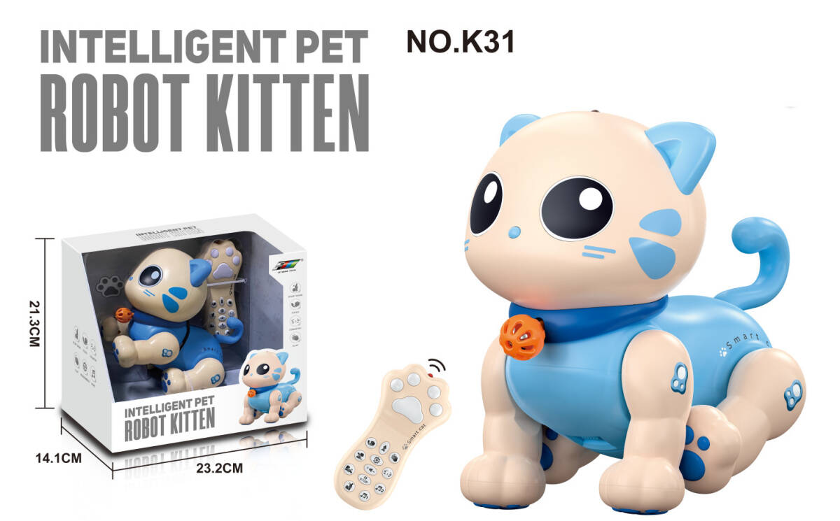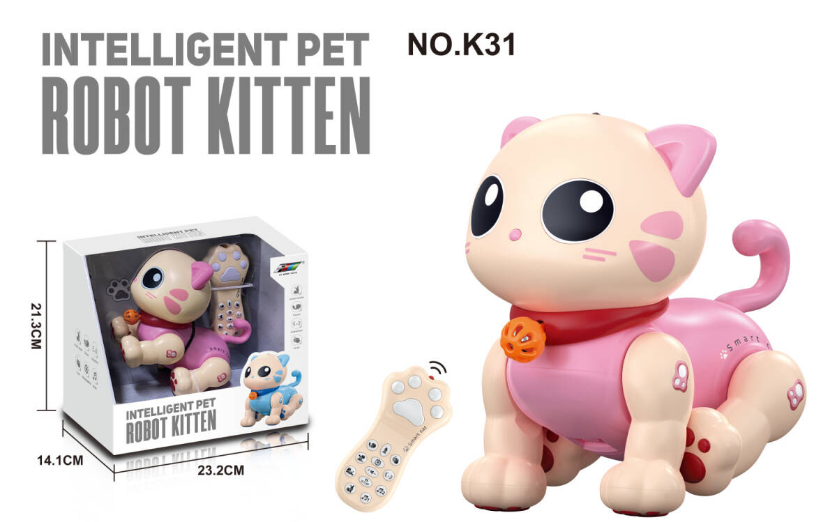 ● リモコンで簡単操縦して遊べる ペットロボット おもちゃ ● お座り、うつ伏せ、逆立ち、甘えるなど様々な動作します ● 簡易プログラミング機能で動作を順番にセット・再生 ● ネコ の耳が光る ● 猫の首にネコ鈴付き ● センサー搭載、手を叩くと、歌ったり踊ったり あごに触れて、かわいいアクションと鳴き声で癒される ● 便利な充電式 本体はバッテリー内蔵、USBケーブルで直接充電 リモコンは単4アルカリ乾電池 X 2本(別売) ● 子供 が喜ぶ プレゼント