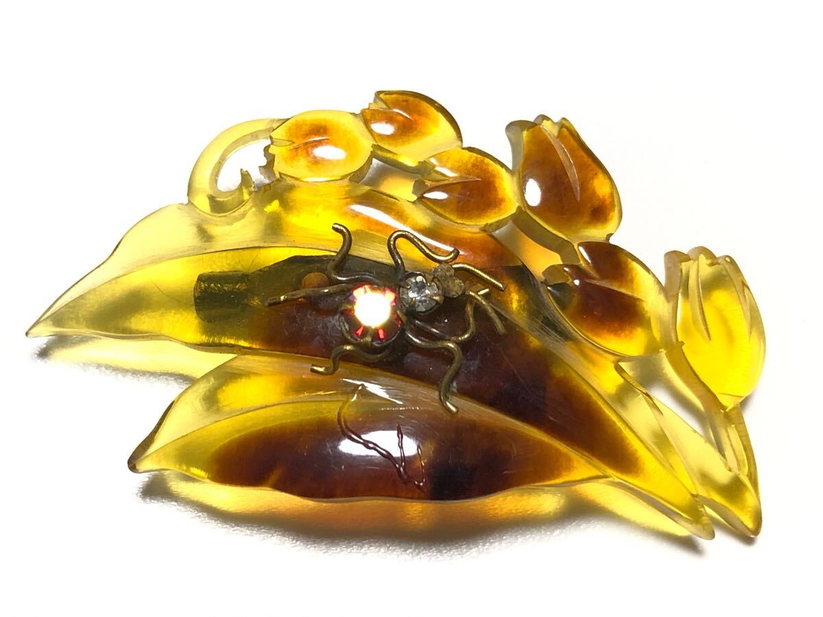アンティークの鼈甲張を使用した、チューリップに虫デザインのブローチです。鼈甲部分に虫食いはありません。| 出价者 | 信用 | 价格 | 时间 |