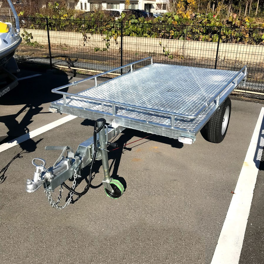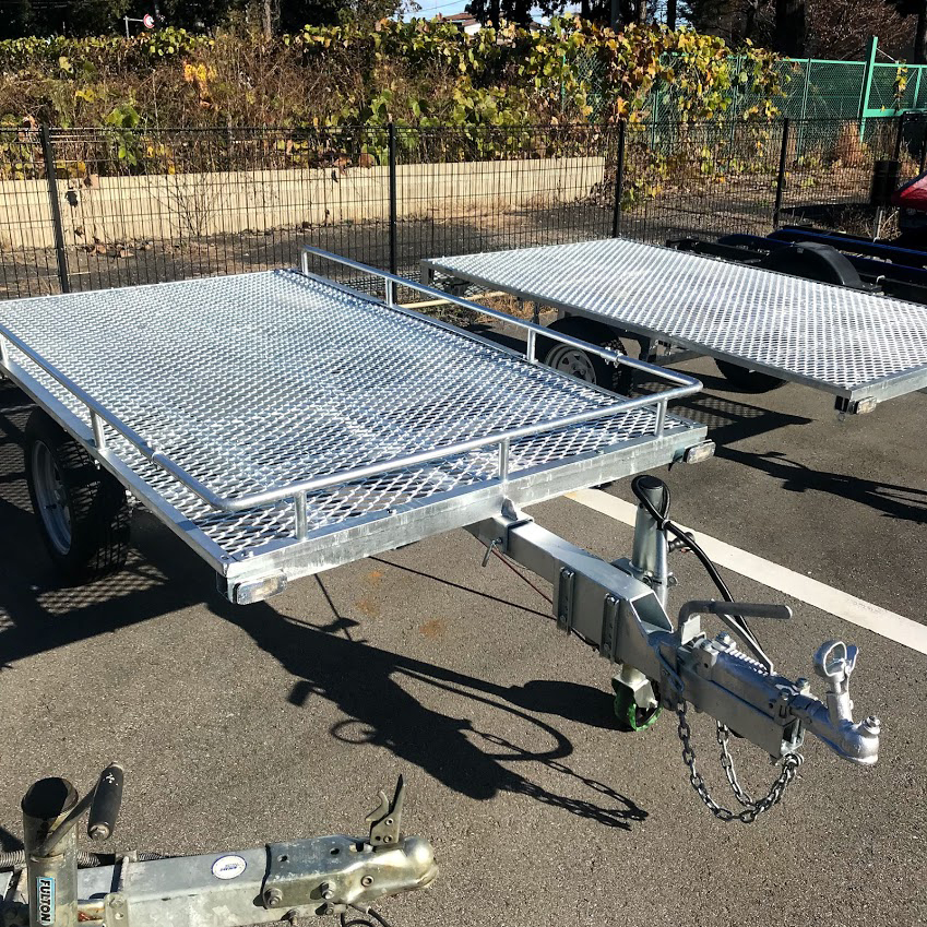 | ●各商品画像はプロトタイプです。 予告なく詳細のデザイン等が改良により変わる場合がございます。 予めご了承ください。 ●トレーラーは積載するボートの総重量(本体、ガソリン、オイル、バッテリーを含んだ重量)を確認の上、最大積載量の範囲内に適合するトレーラーをお選びください。 ●総重量(最大積載量+車両重量)が750kgを超えるトレーラーを牽引するには牽引免許が必要です。 ●トレーラーは道路運送車輌法に従って必ず車検・登録を行ってください。 (継続車検を含む) ●トレーラー車検取得には一部の地域を除き、車庫証明が必要です。 (軽トレーラーは軽自動車の保管場所届出義務等の適応地域で必要) ●トレーラーを牽引するためには牽引車両へ最大牽引重量に適応したヒッチメンバーの装備、及び電源供給装置が必要です。 ●トレーラー側に牽引車を指定する場合は別途連結検討書の作成が必要です。 ●車種とトレーラーの大きさによっては牽引出来ない場合もありますので、必ず事前にご相談ください。 ●牽引時は制動停止距離が通常より伸びます。運転には細心の注意を払って走行してください。 ●荷物は前後左右バランス良く積載してください。 バランスが悪いと最悪横転等の危険がございます。 ●トレーラーはメンテナンスフリーではありません。 特に海水に浸けた場合は速やかに真水で各部を洗い流してください。 放置しますと錆の原因になります。 |