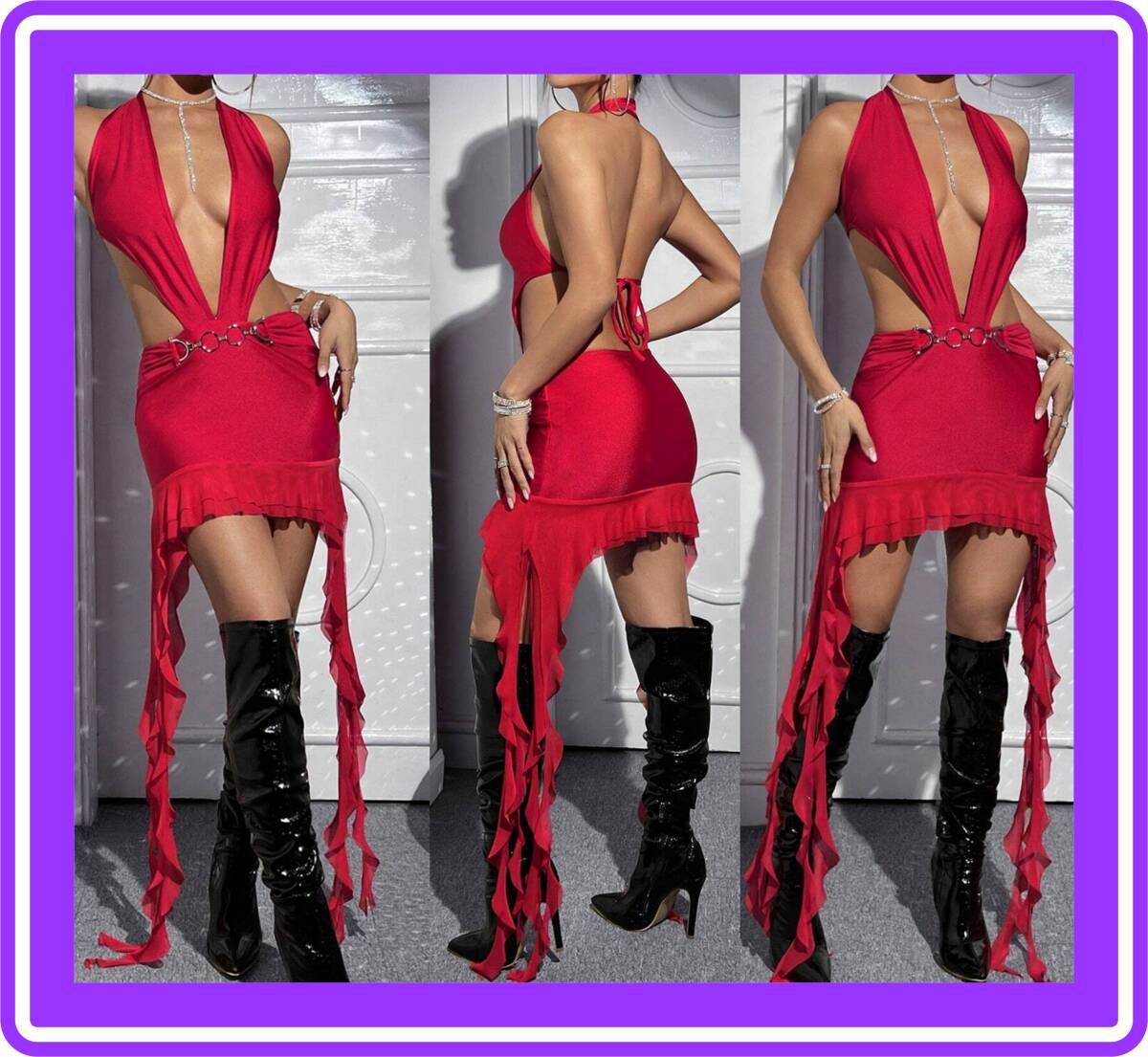 | ♥♥★レッド ボディコン★プランジング★オープンバック★ミニスカ★サテン★大人可愛い★Sexy★キュート★E112W♥♥ | |