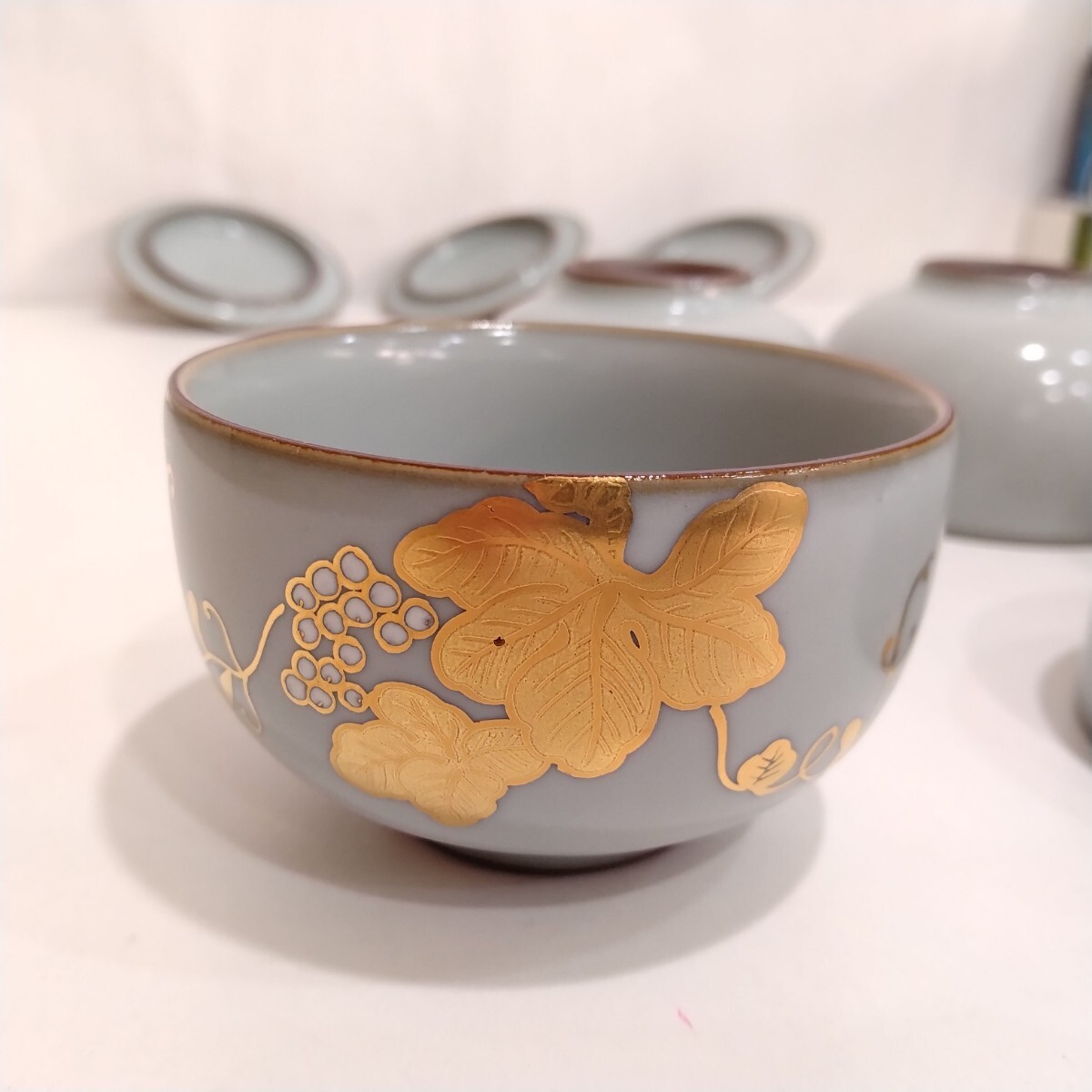 商品名 | 青嵐 金彩 お茶呑茶碗 葡萄柄 蓋付 湯呑 5客セット 箱入り |