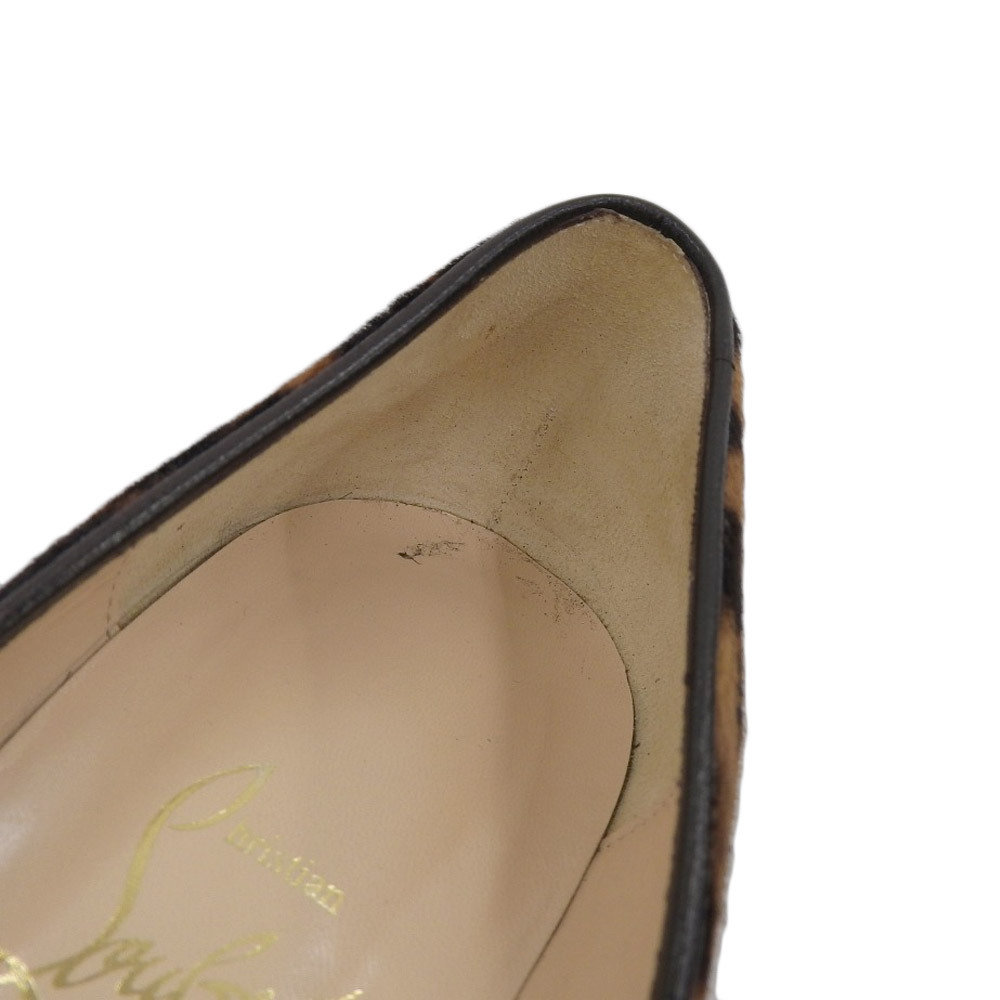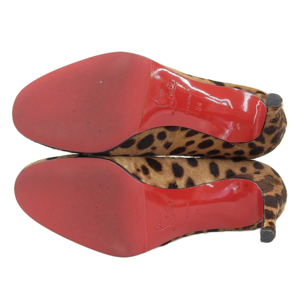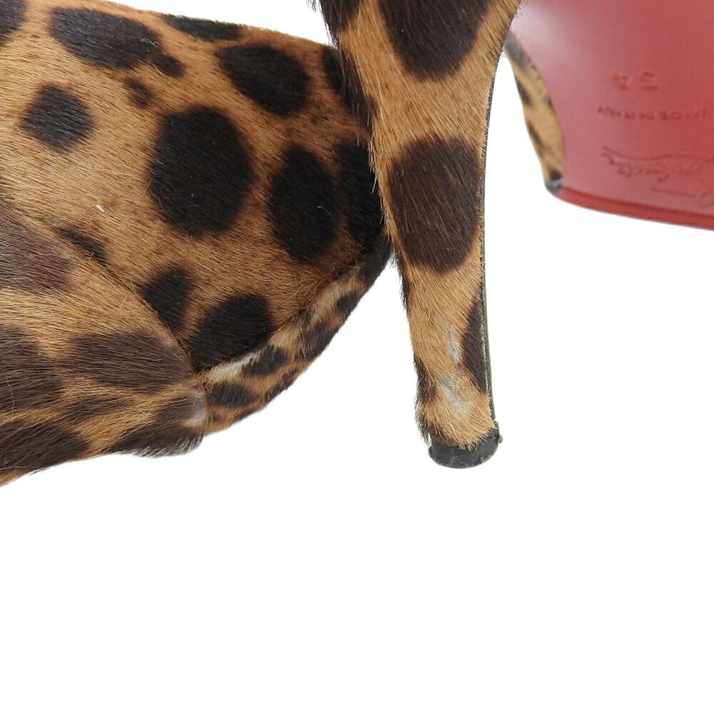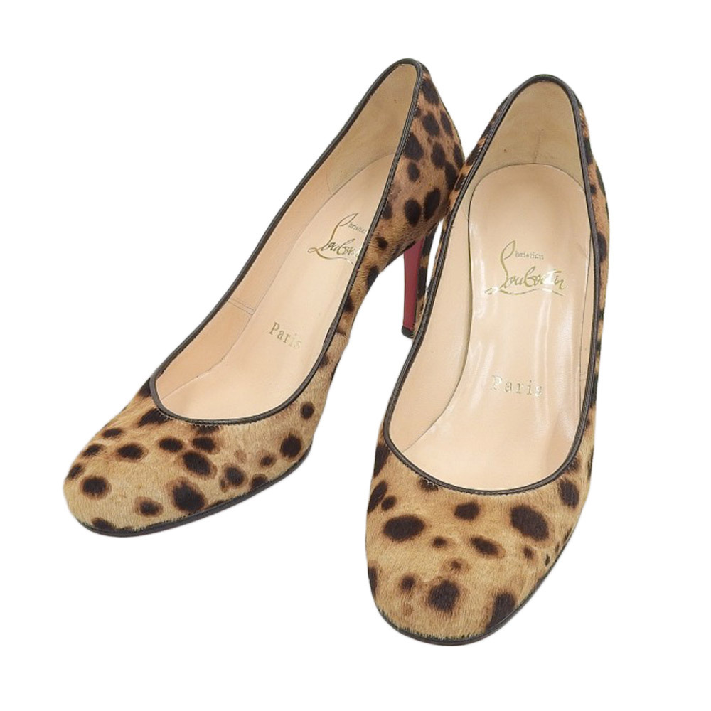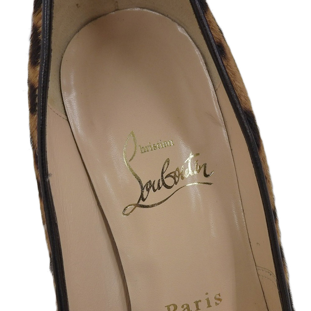 | 美品 クリスチャンルブタン 現行ロゴ レオパード柄 ハラコ レザー アーモンドトゥ パンプス 34 22cm |