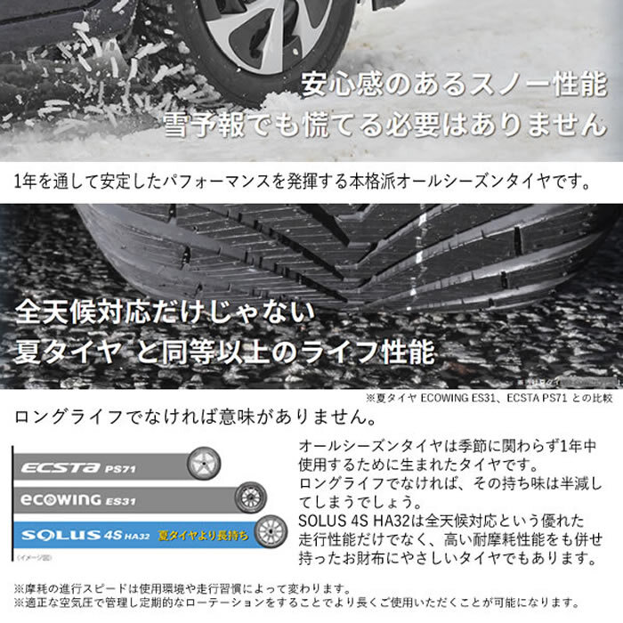 | ご覧いただき誠にありがとうございます。 お急ぎの場合は入札前に質問欄で予定に間に合うかどうかの確認をしてください。 迅速、丁寧を心掛けております。ご安心して取引ください。 タイヤメーカー:クムホタイヤ ソルウス 4S HA32 SUV
