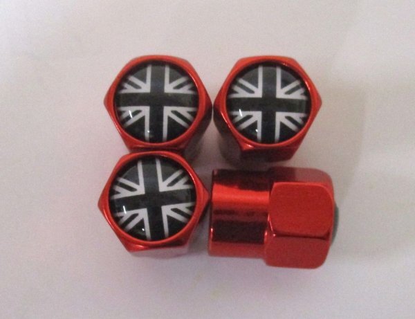 【新品・即決】#赤 ブラック ユニオンジャック MINI BMW エアバルブ キャップ 4個セット ホイール タイヤ