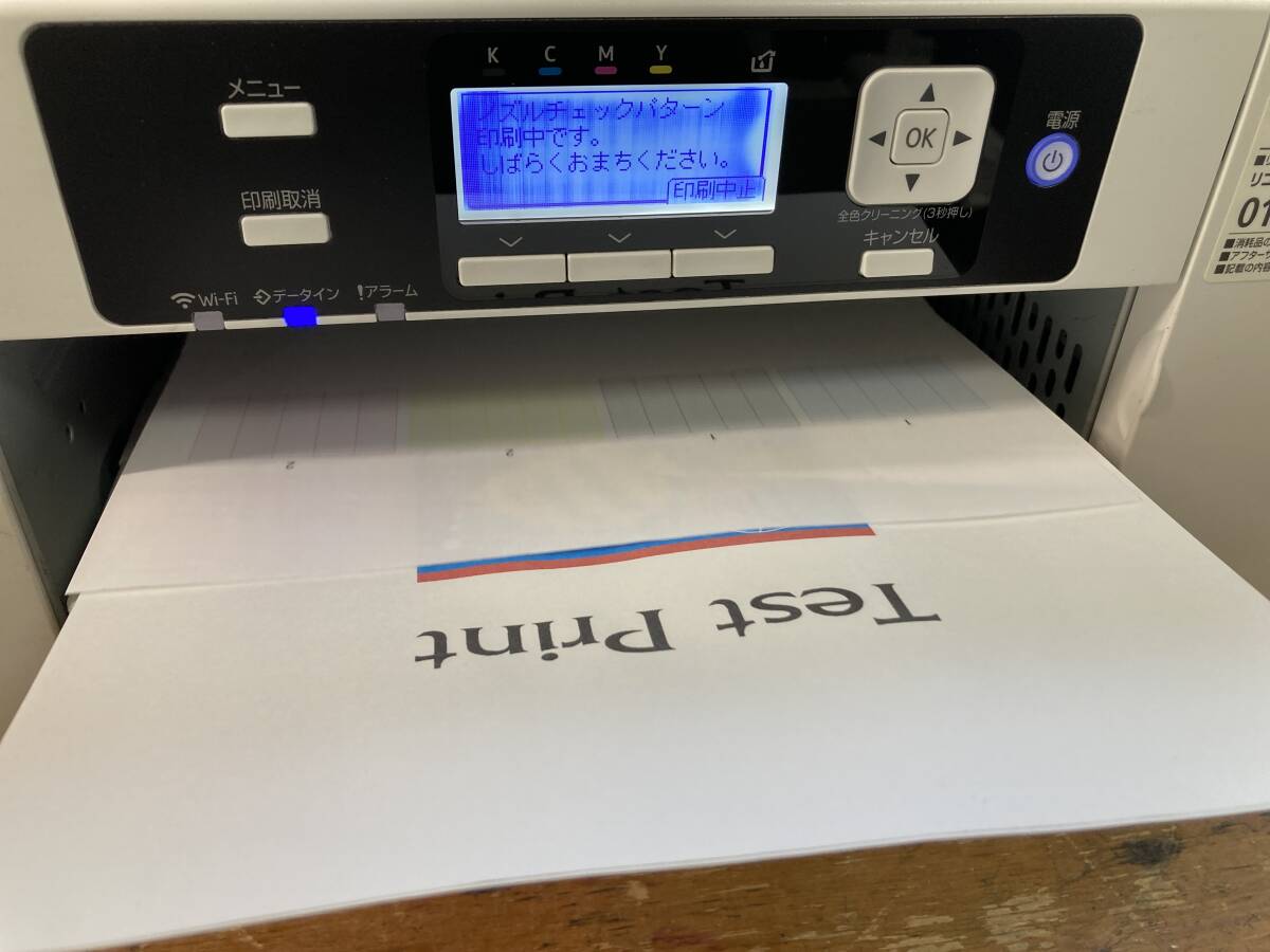 ノズルチェック、リスト印字、カラーサンプルの確認を行っております。