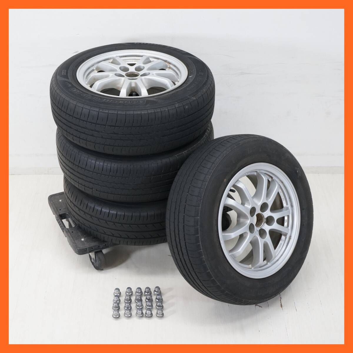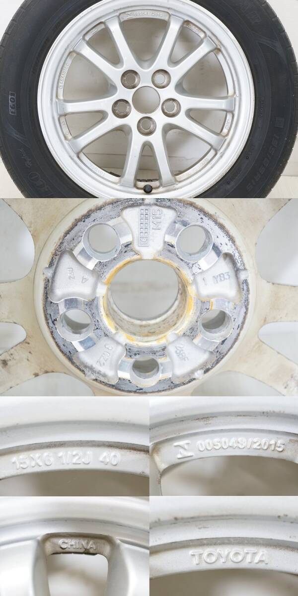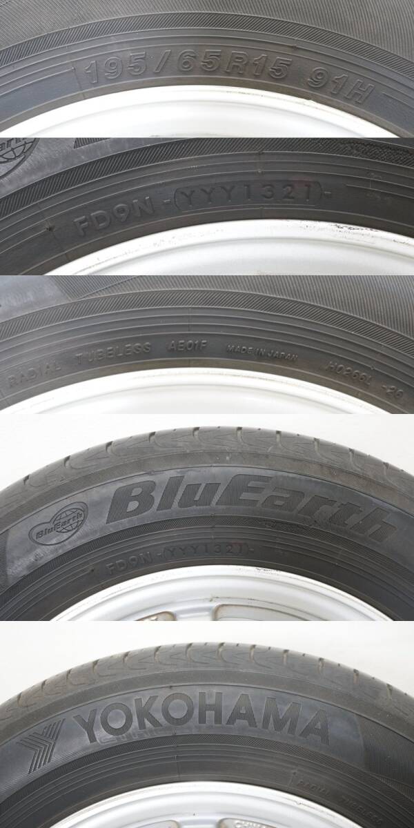 ■東ハ:【15インチ】タイヤ付ホイール4本セット トヨタ 15×6.5J 40 5穴 / EfficientGrip ECO EG01×3 BluEarth×1 195/65R15 91H ★送料無料★ ■ 15インチ タイヤ付ホイール4本セット 「 トヨタ純正 15×6.5J 40 5穴 / タイヤ2種 195/65R15 91×4本 」セットになります。 【タイヤ】 ・メーカー:グッドイヤー×3点 / ヨコハマ×1点 ・ブランド:EfficientGrip ECO EG01×3点 / BluEarth×1点 ・サイズ: 195/65R15 91H ・製造年週:1621×3点 / 1321×1点 ・残り溝:(約) 4.0 mm 【ホイール】 ・メーカー:トヨタ純正 ・サイズ:15×6.5J 40 ・穴数:5 【サイズ】 (約) 高さ20.8× 幅62.5 ×奥行62.5 cm×4点 中古のお品となります。 付属品は写真にあるものが全てです。 経年・使用に伴うヨゴレ・サビ、キズ・ケズレが複数、 タイヤ1点にパンク補修跡、ヒビ入りなどがございます。 商品画像をよくご確認の上、ご参加ください。 [管理No.25100101R1] |