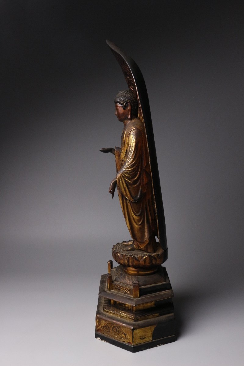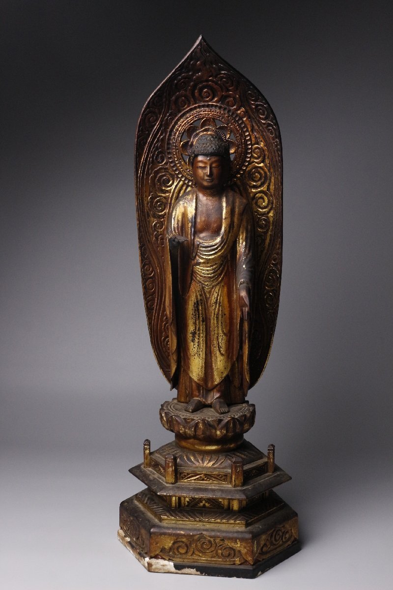 * * * 商品詳細 * * * ここでしか出逢うことのできない唯一の美をご紹介させて頂きます。 黄金色に輝く大迫力の阿弥陀如来像のご紹介です。 金色の輝きに包まれた55㎝もの阿弥陀如来像は仏教美術ならではの神々しさがあり うっすらと伺える玉眼の瞳と威厳のある様は実に存在感がございます。 光背も仏様に劣らず丁寧に造られており 花々の花弁一枚一枚まで細密な彫刻で表現されています。 当時の輝きを現代にも残し伝えている時代仏像を この機会にぜひお手元にてご堪能ください。 ■サイズ/横20.6cm×高55cm×奥行14.7㎝ ■状態/スレ、傷、剥げ、割れ、経年による傷みがございます。 右手が反対に接着されています。 ![]() * * * 支払詳細 * * * !かんたん決済 * * * 発送詳細 * * * 入金確認後3営業日以内に発送致します。 ※直接引き取りも可能です。 60~160サイズにつきましては 佐川急便、ゆうパックのどちらかで発送いたします。 ゆうパック発送の場合、弊社の発送日から追跡サービスに問合せ番号が反映されるまで 約1日ほどお時間がかかりますのでご了承下さい。 * * * 注意事項 * * * 運送中の破損があった場合は速やかに当社までご連絡下さい。 保険を利用するのに受取連絡後に運送会社による現場での破損状況確認が必要となります。 勝手に返送されますと保険の適用外となりますのでご注意ください。 * * * * * * お問い合わせ:082-236-8669 |