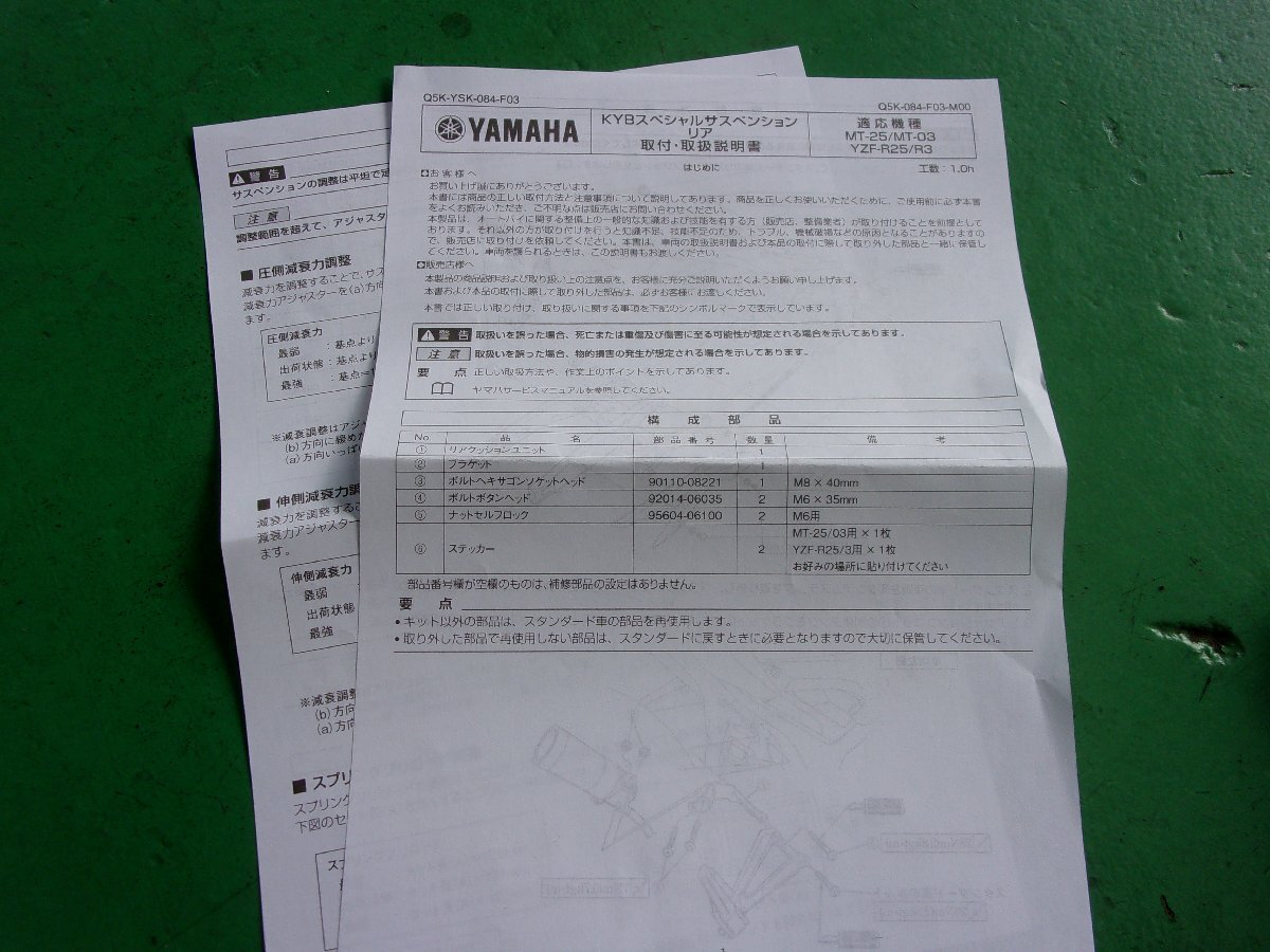 ★メーカー ヤマハ/ワイズギア ☆モデル KYBスペシャルサスペンション リア ★状態 中古品 小傷、少々汚れありますが中古品にしてはきれいです。付属品は画像のものですべてになります。使用期間や使用距離は不明です ☆適合 ヤマハ MT-25/MT-03、YZF-R25/R3用 ★在庫 買取センター店 |