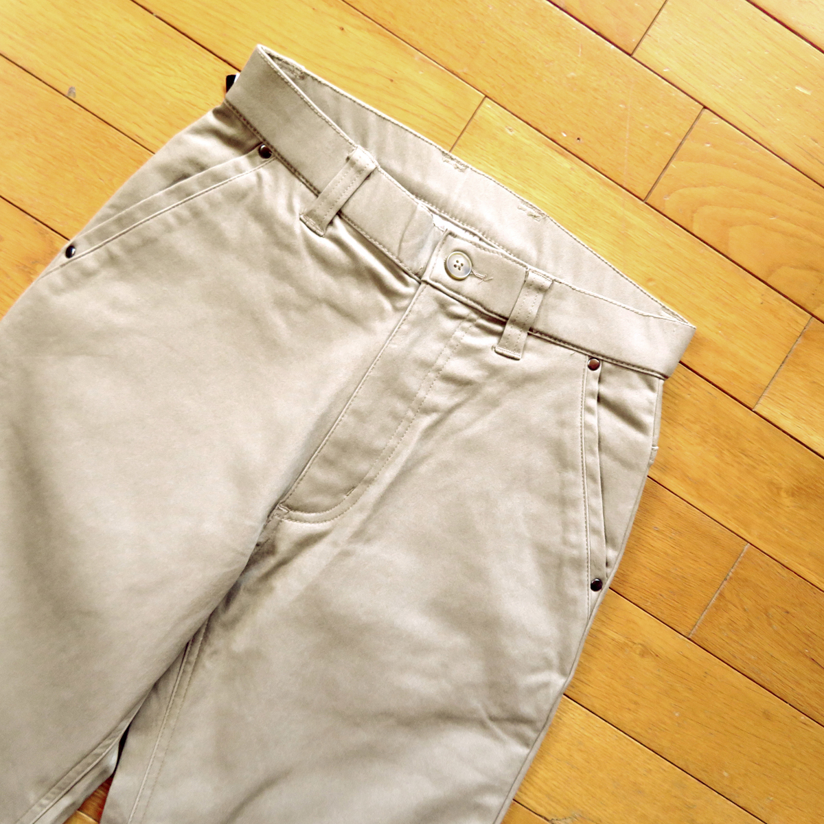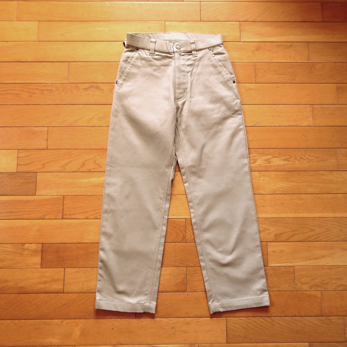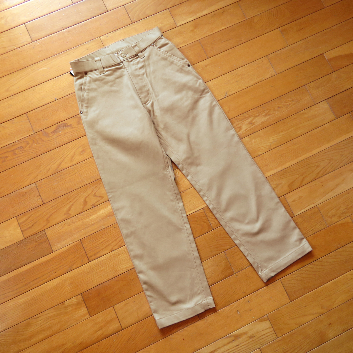 COMME LE VENT HOMMEのストレッチがうれしい快適らくらくチノパンです。 ストレッチがかなり効いていて、すごく履きやすくなっているチノパンツです。 生地も柔らかめで肌触りもとっても良い感じなっています。 シルエットな普遍的な、チノパンシルエットですごく使いやすくなっています。 お色は、ベージュ色です。 すごく便利なアイテムです。いかがでしょうか^^ 【コンディション】 タグ付きのまま、未使用で保存してしまっていたものです。 経年経過で、多少のダメージや薄汚れ等あるかもしれませんが、見たところ 着用に支障があるような大きなダメージ、汚れなどは有りません。 きれいだと思います。十分着用していただけます。 ------------------------------------------- 【表記】サイズ S 【実寸】 平置き ウエスト 32cm×2(64cm)(平置き後ろ直線測定) 股上 27cm 股下 62cm 裾幅 18.5cm わたり幅 25cm(付け根から10cm下を水平に計測) 前後程度になります。※平置き、素人採寸になりますので、多少の誤差はお許し下さい。 ------------------------------------------- 【材質】 綿64% ポリエステル 34% ポリウレタン2% 【色】 ベージュ 【未使用タグ付き品】 ------------------------------------------- ◆ 他にもいろいろデニムなど出品していますので、よかったら見ていってください。 ◆ もちろん同梱もできますので、お気軽にご質問ください。 ◆ 気持ちの良いお取引を目指していますので、ご質問は事前にお気軽にどうぞ。 終了直前だとお答えできない場合があります。どうぞよろしくお願い致します。 | ||||
