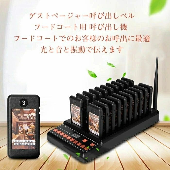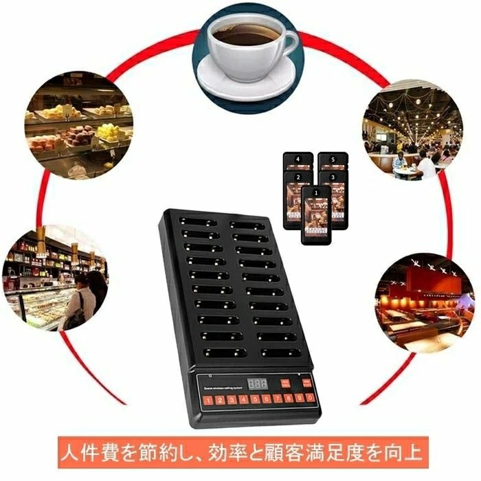 ワイヤレスページングシステム---ゲストの利便性のため、ゲストは注文後に空きスペースで休むことができ、バーで並んで待つ必要はありません レストランのイメージと雰囲気。作業効率が向上します。スタッフの混乱を避けます。キュー内の群衆を最小限に抑えます。レストラン、フードコート、ホテル、ストック、ビジネス、またはキューに多くの顧客がいる他の場所で広く使用されているゲストに、より速く電話をかける