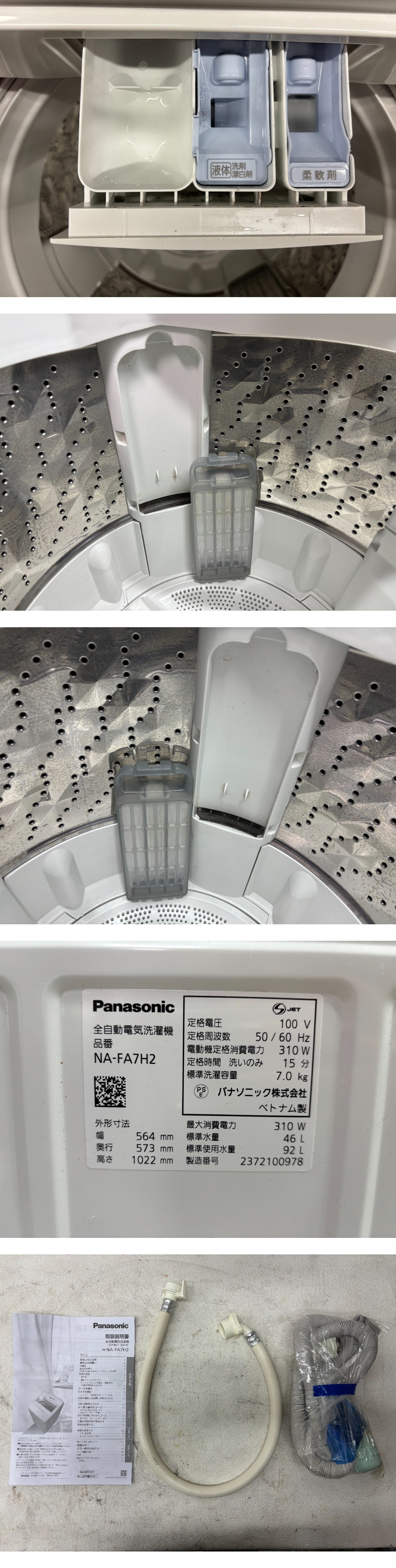 大阪発 パナソニック 全自動電気洗濯機 NA-FA7H2 標準洗濯容量7kg 2023年製 KA MSh | |||||||||||||||||||||||||||||||||||||||||||||||