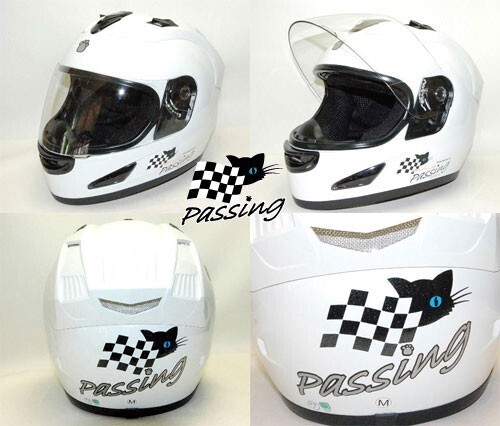 黒猫キャラクターブルーアイちゃんのパッシング・フルフェイスヘルメットです。 ■サイズは Lサイズ59~60㎝ ・Mサイズ57~58㎝ ・XLサイズ61~62㎝がございますのでサイズ変更も可能です。 【調整スポンジもお付けいたします。】 当店のオリジナルステッカーもプレゼント! ご希望でPassingの文字の部分をご希望のネームに変更出来ます。 【落札後に8文字までで、ご連絡をお願いいたします。】 キラキラのメタリック素材・屋外対応のステッカーで猫ちゃんとにゃんこ手形を上から剥がれにくい様にクリアーでコーティングもしてあります。 ■あご紐はワンタッチ式 ■内装は、取り外し可能で洗えます。 ■通気性を考えたベンチレーション機能付き ■SG規格適合品(全排気量対応) シールドはUVカットの透明が付いております。 ★別売り2500円プラスで下記のシールドのお色も追加できますので、落札後にご連絡くださいませ。 【かんたん決算の時に送料の方にプラスで追加可能です。】 ①ライトスモークシールド ②クリアーミラーレインボーシールド ③クリアーミラーシルバーシールド 【①~③は夜間でも見やすい薄いお色です。】 ④スモークシールド ⑤ミラーレインボーシールド ⑥ミラーシルバーシールド 【④~⑥は濃いめのお色となりますので夜間には見えにくいです。】 | ||||||||||||||||