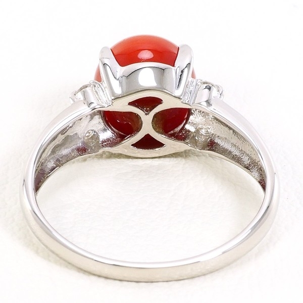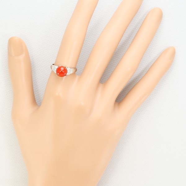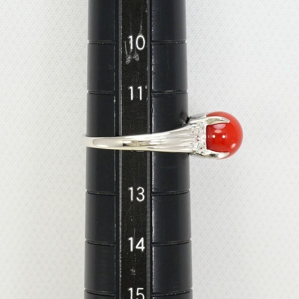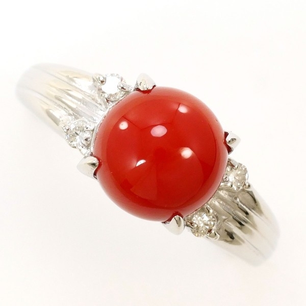 | PT900 リング 指輪 12号 サンゴ 約8mm ダイヤ 0.08 総重量約4.1g 中古 美品 送料無料 | |
