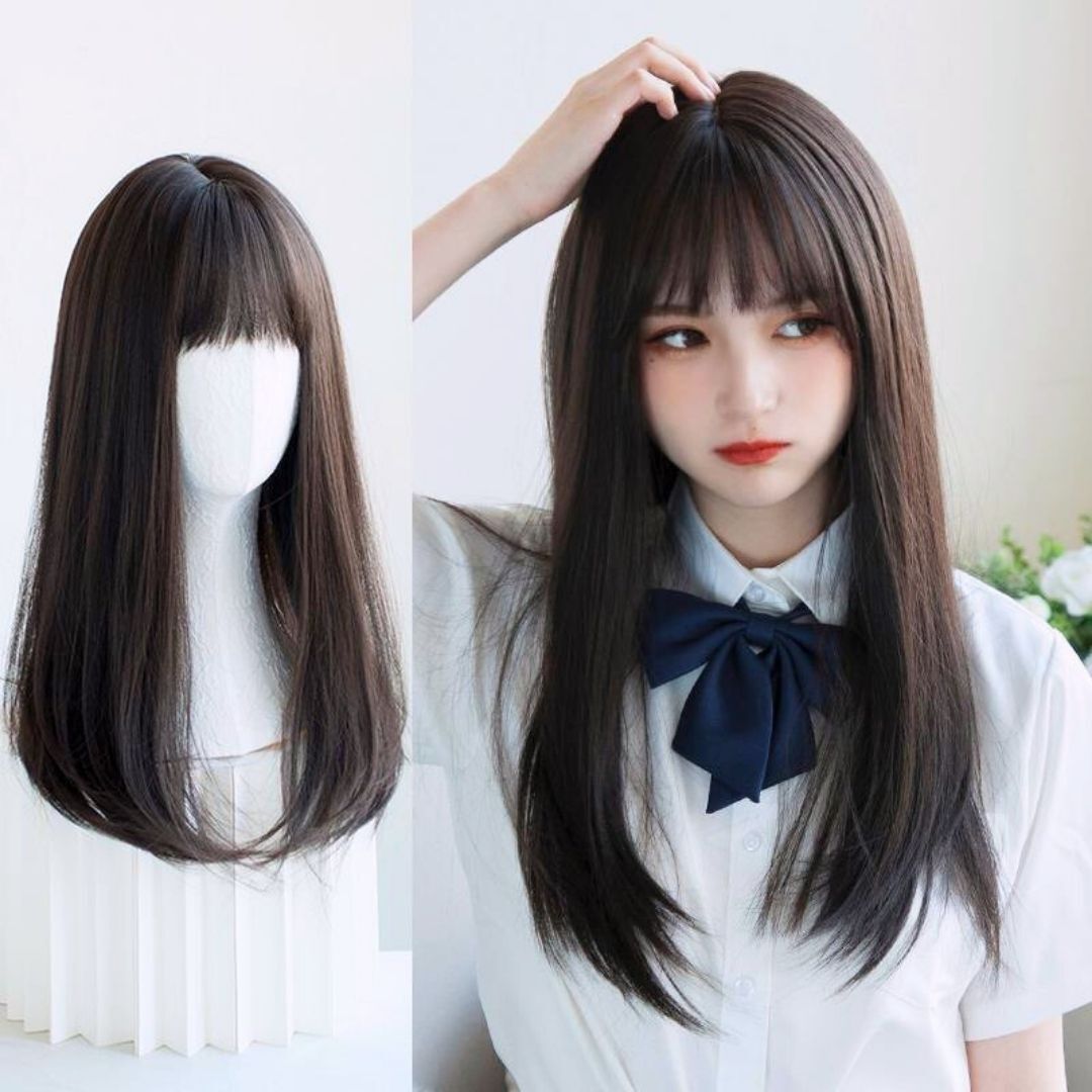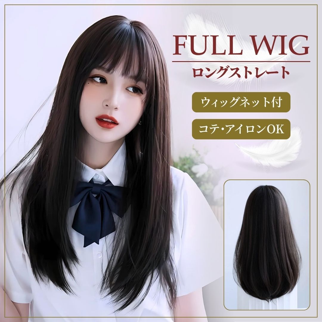 | ウィッグ ロング ストレート 黒 ブラック フルウィッグ セミロング ナチュラル 自然 かつら 女性 小顔 医療用 コスプレ 可愛い ネット付き |