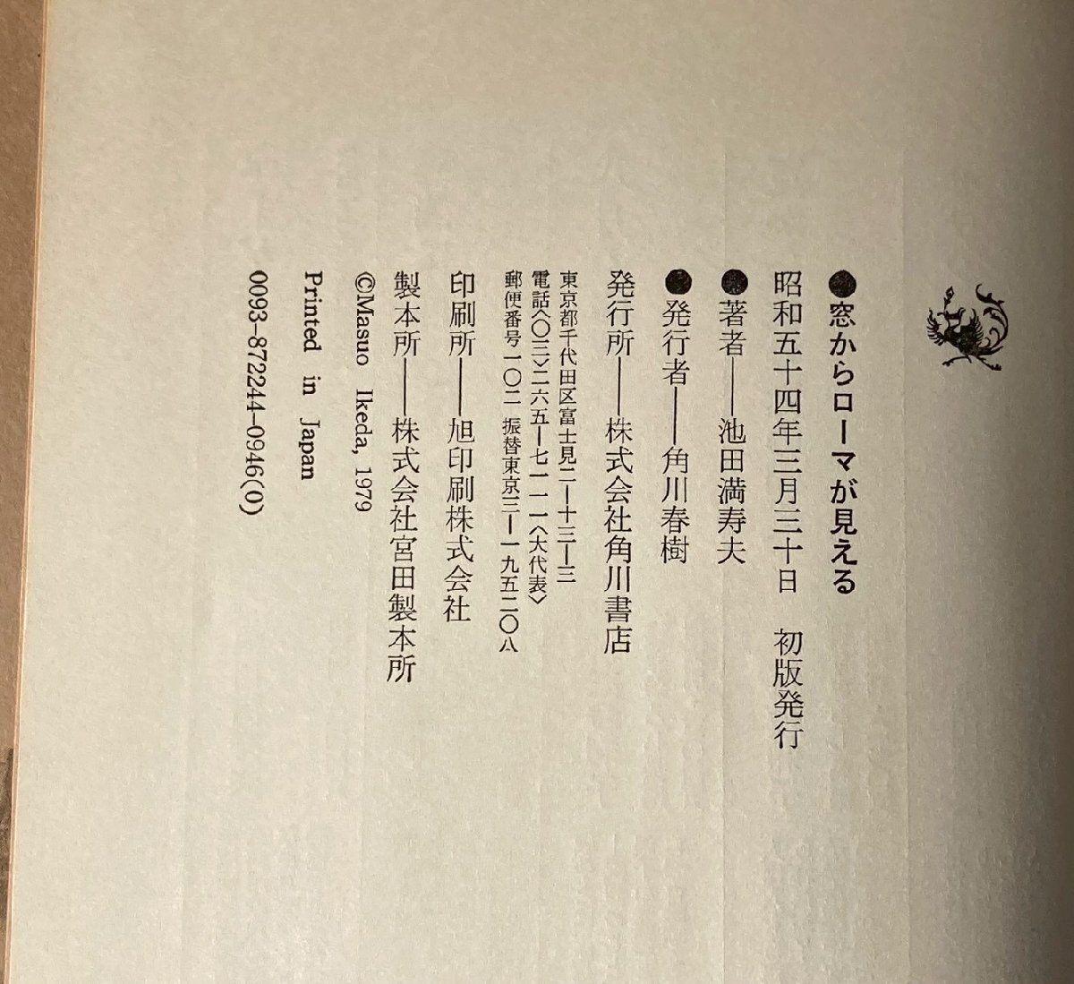 | 商品名 | 窓からローマが見える 池田満寿夫 角川書店 昭和54年発行 初版 芥川賞作家 帯付き VBカバー |