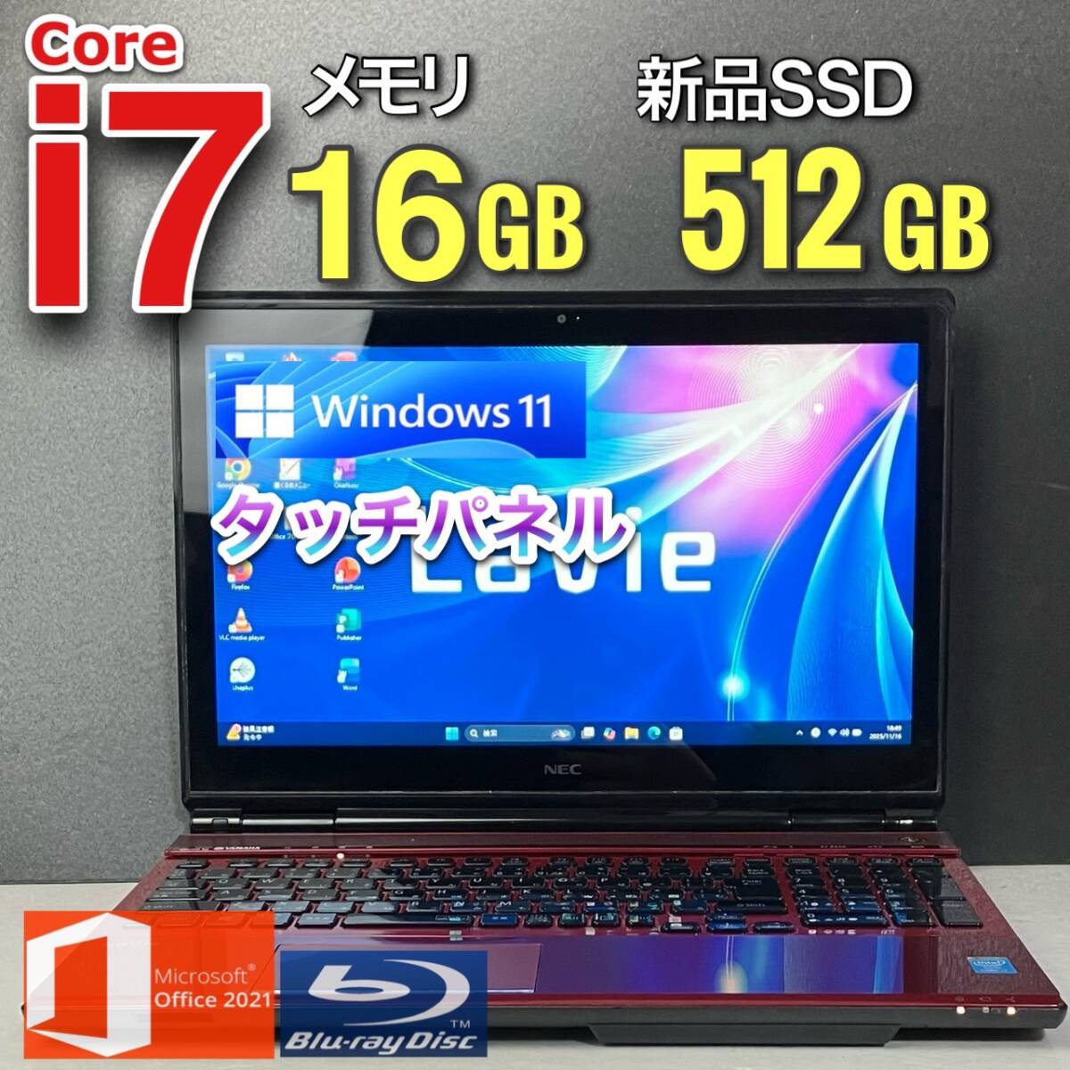 | 【配送商品の中身】 □ノートパソコン本体 (新品SSD、メモリ内蔵済み) □ACアダプタ □延長保証パンフレット 【スペック】 ■メーカー・型番:NEC LL750/N レッド ■インストールOS:最新版Windows11Home 64ビット ■CPU:Core i7-4700MQ(4コア/8スレッド) ■メモリ:16GB(8GBx2) ■容量:爆速新品SSD512GB ■光学ドライブ:ブルーレイドライブ(BD-RE) ■Office ・Microsoft Office 2021 Professional Plus(!から購入した正規品でプロダクトキー付属しています) ■装備 ●15.6型ワイド(16:9) タッチパネル付 1366×768ドット 発色も良く液晶良好★使い勝手がいいオーソドックスなサイズ感です ●無線LAN対応 ●有線LAN対応 ●高速USB3.0ポートx5 ● HDMIポート搭載 モニターに出力して大画面での作業や動画視聴も可能 ●Webカメラ搭載 有効画素数約92万画素 ●Bluetooth搭載 ■動作確認