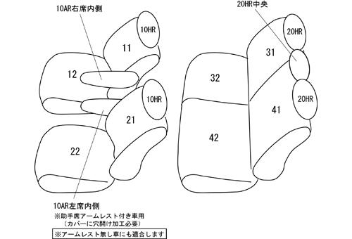 | 適合形状 | ※2列目背もたれ背面は、撥水表皮のようになっていますが、背もたれ背面にもカバーはかぶります。 ※助手席アームレスト装備車は、背もたれに穴開け加工が必要です。 |