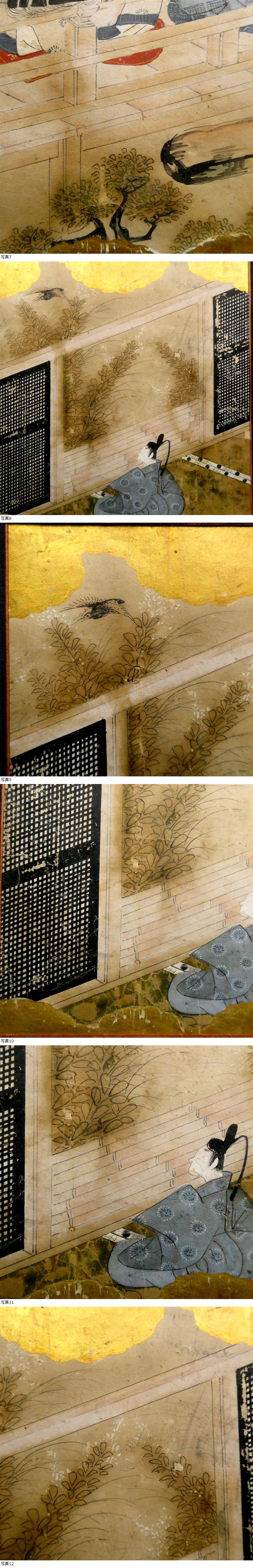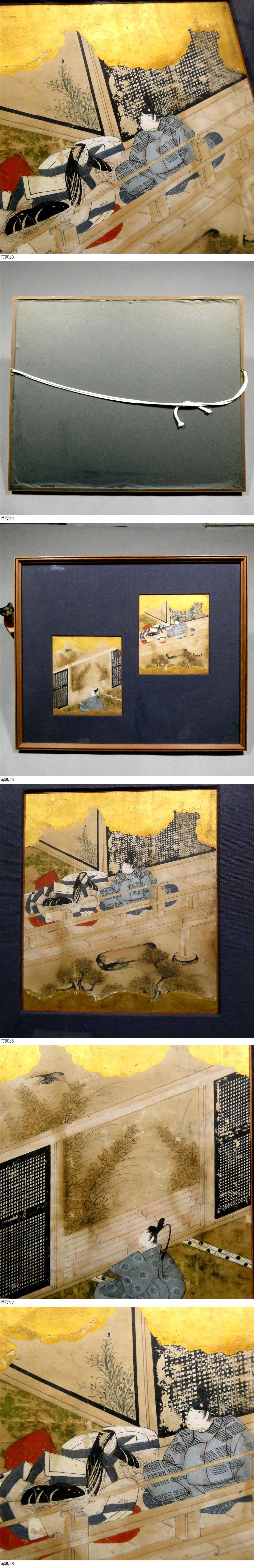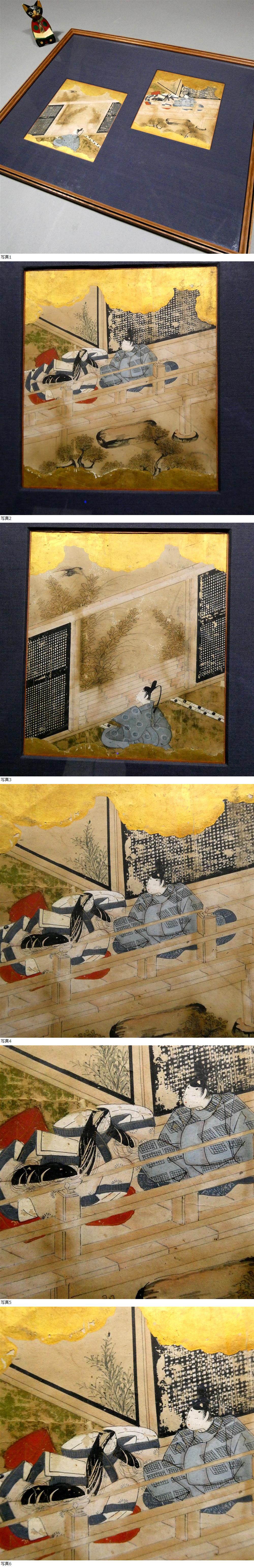 ■ 『源氏物語』か、江戸前期/肉筆古画/金泥・和紙/二点一組・額装品 ■ |
