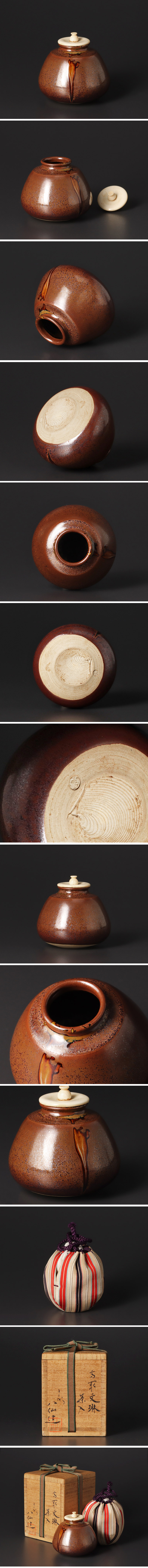 造形と釉薬の表情ともに、手に取ると土の温もりがやさしく伝わります。仕覆(日野間道)が付属いたします。 ★商品は十二代高取八仙の作品である事を保証致します。 |