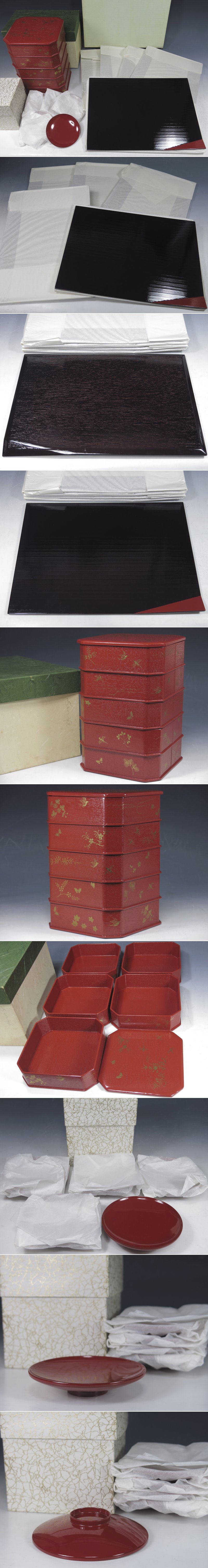 | 商品名 | 懐石道具 色々まとめて 盆 皿 五段重 小皿 金蒔絵 漆器 漆塗 漆芸 木地 茶道具 茶懐石 箱付 |
