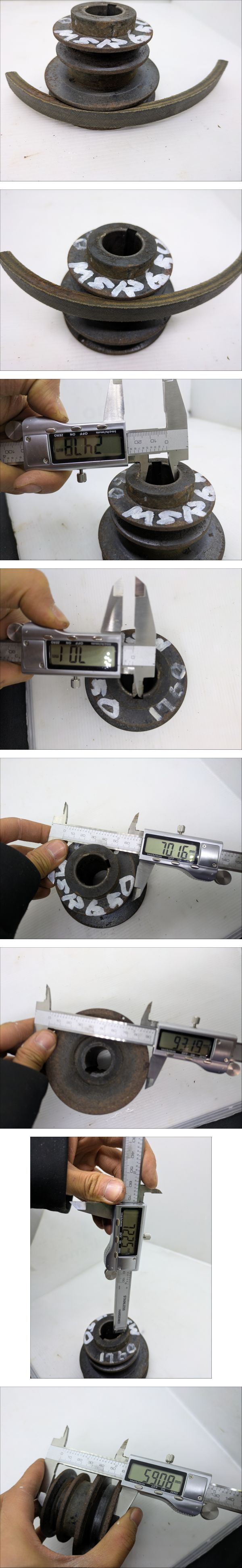 | ●●最後まで読んで下さい●●納得した上でご入札してください●● ●機械専門アカウントは**こ ち ら**です。 ●当方の別出品物を同時購入しても送料分安くなりません。 ●発送料金は入札ボタン付近にあり、沖縄、北海道、離島以外一律です。 ●塩尻市から発送します。 ●離島発送はできない場所がございますので、事前にお問い合わせください。 ●発送日は月、水、金、日です。急ぎの場合はご連絡をお願いします。 ------------------------------------------------------------------------------------------- ●MSR650三菱除雪機から外しました。 ●2連のプーリーです。 ●A/Bベルトです。 ●軸 径:約Φ25mm ●鍵 幅:約7mm ●プーリー外径:約Φ70/93mm ●全体 厚さ:約72mm ●ベルト部 厚さ:約59mm ●書いたインクは消さずに発送します。 ●素人寸法のため、測定誤差があります。 ●中古品のため、サビや汚れがあります。 ●錆は各自で取り除いてください。 ●現状写真の通りのまま送ります。 ------------------------------------------------------------------------------------------- ●下の方にも画像がございます。※たまに写真の枚数が不足していて画像がない場合があります。 ●落札後、ご指定配達の時間帯がある場合はあらかじめご連絡してください。 | |||