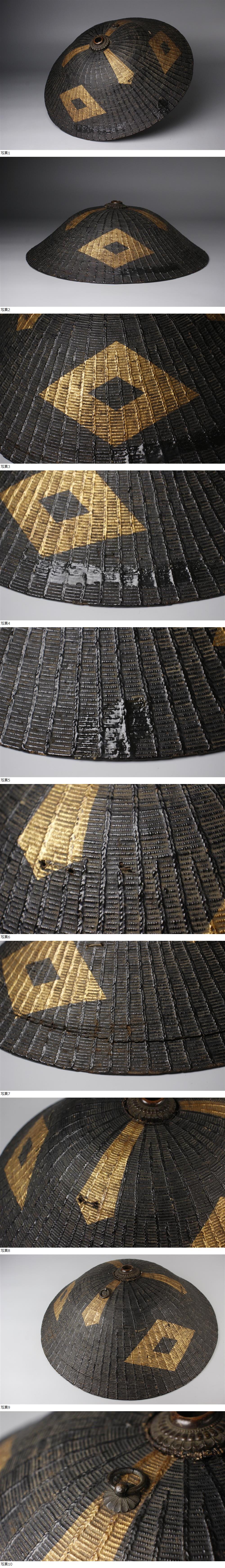 26032009* * * 商品詳細 * * * ここでしか出逢うことのできない唯一の美をご紹介させて頂きます。 端正な編目が美しい菱紋網代陣笠のご紹介です。 細やかな網代編みに黒漆を施し、金彩の菱紋が映える格調高い逸品で、 手に持った際の軽量感と、武具としての堅牢さを兼ね備えた機能美は、 美術品として高い価値を感じさせます。 頭頂部には菊文の彫金が配され、細部まで網代網の素朴な風合いに格調高いアクセントを添えています。 当時の職人による丁寧な手仕事が垣間見れる時代の逸品を この機会に是非お手元にてご堪能ください。 ■サイズ/横33cm×縦9.5cm ■状態/経年による傷み、スレ、傷、欠け、剥げ、ちぎれ、割れ、直し、焼け、シミがございます。 ※写真にてご確認、ご了承の上ご入札下さい。 * * * 支払詳細 * * * !かんたん決済 * * * 発送詳細 * * * 入金確認後3営業日以内に発送致します。 ※直接引き取りも可能です。 60~160サイズにつきましては 佐川急便、ゆうパックのどちらかで発送いたします。 ゆうパック発送の場合、弊社の発送日から追跡サービスに問合せ番号が反映されるまで 約1日ほどお時間がかかりますのでご了承下さい。 * * * 注意事項 * * * 運送中の破損があった場合は速やかに当社までご連絡下さい。 保険を利用するのに受取連絡後に運送会社による現場での破損状況確認が必要となります。 勝手に返送されますと保険の適用外となりますのでご注意ください。 * * * * * * お問い合わせ:082-236-8669 |