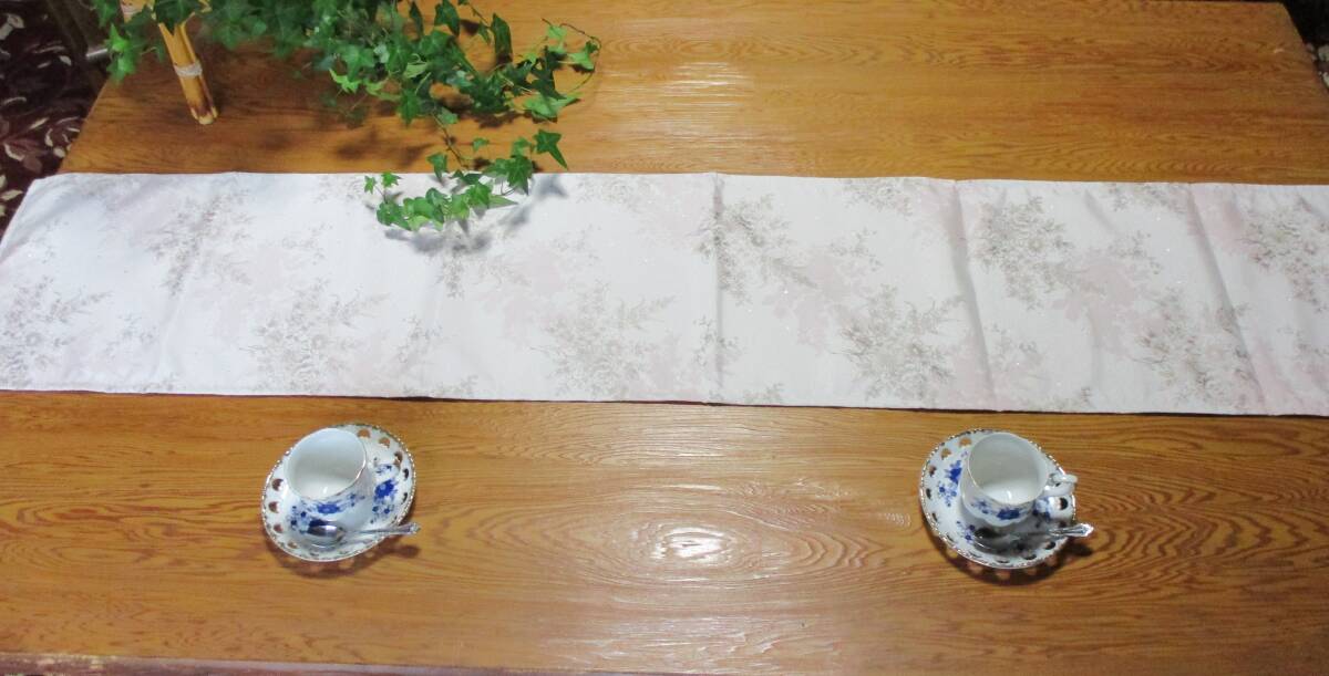 「★ テーブルランナー 小花柄 花柄 160×30cm ピンク シルバー 限定 オリジナル 韓流 デザイン ハンドメイド 新品 未使用 写真詳細参照 Ki-13A(1~4)」