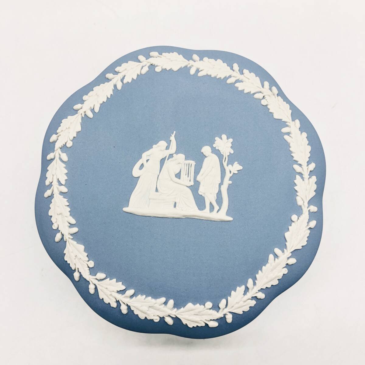 | 【未使用品】Wedgwood ウェッジウッド ジャスパー ペールブルー 小物入れ 蓋付 器 陶器 箱付 / io-0427-sw | ||