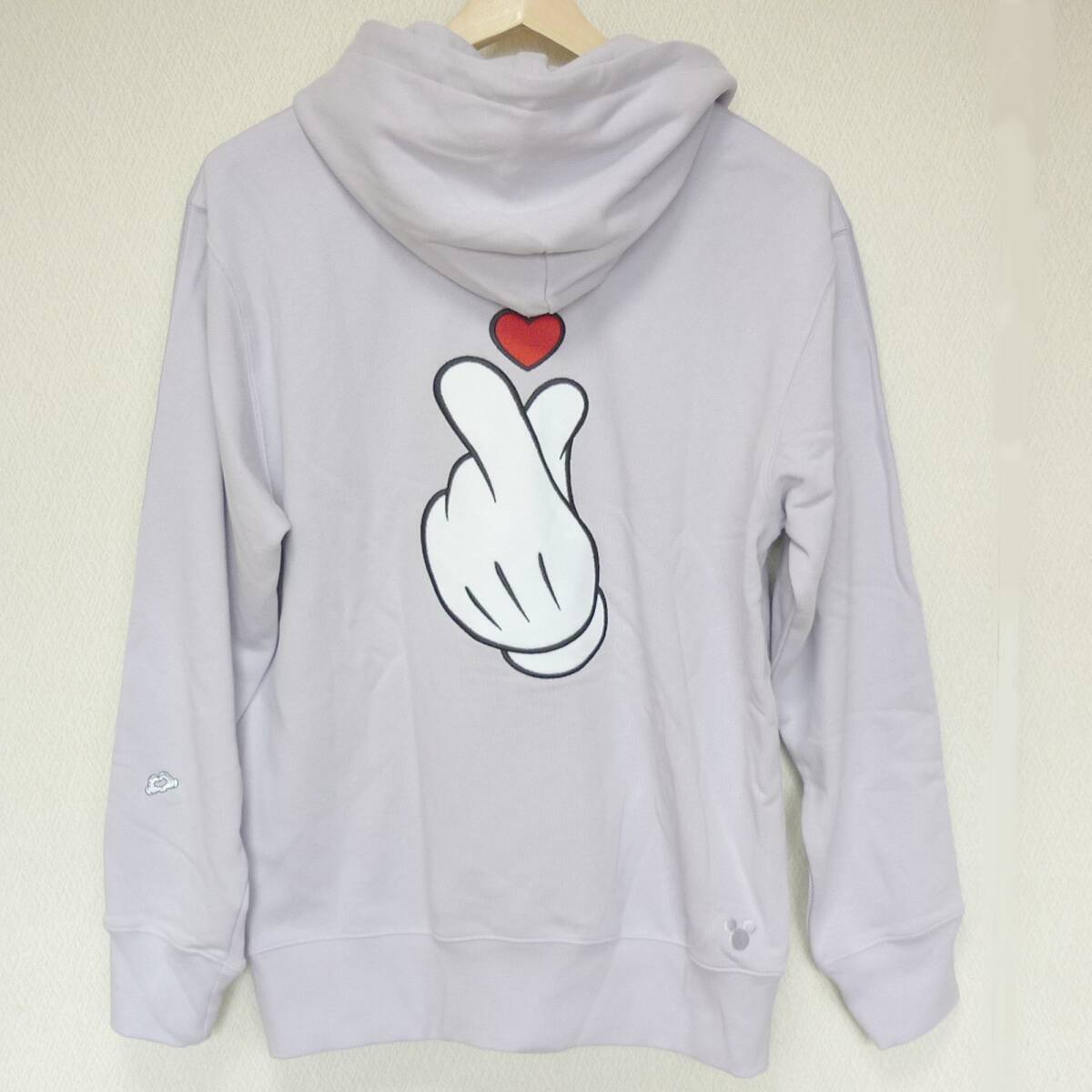 ソフトなコットンフレンチテリー素材のゆったりとした着心地で、背中にミッキーのお馴染みのグローブをはめた手をあしらっている。