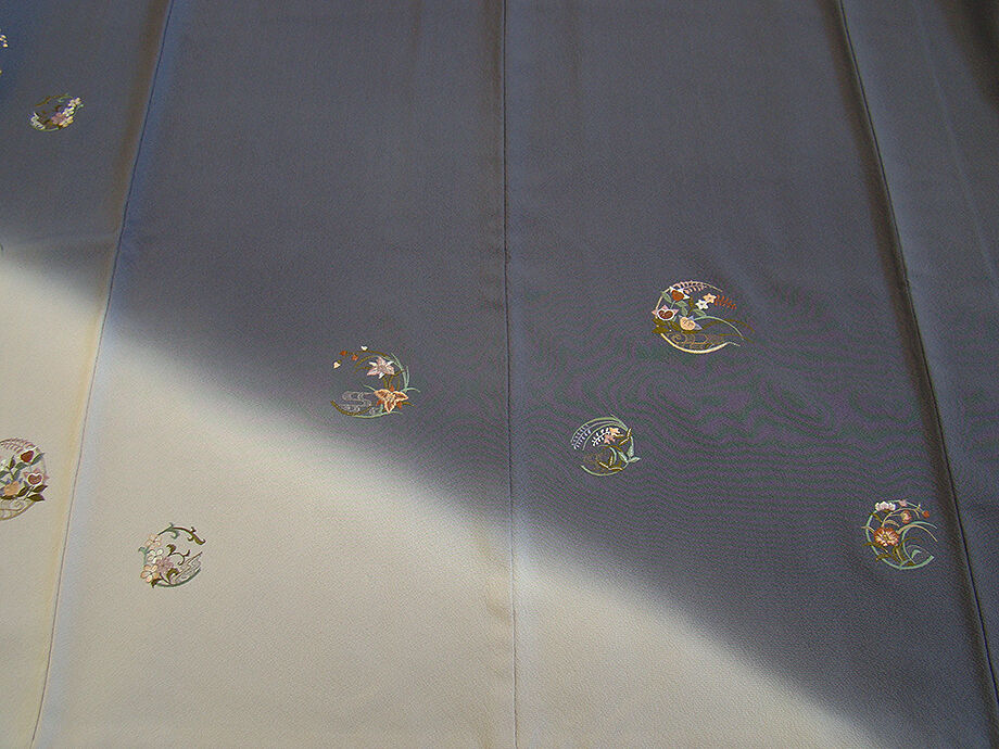 | 商品説明 | こちらのお品は「袷」でございますので、10月~5月にお召頂ければと思います。 しなやかで滑らかな着心地良ぽってりとした重めのちりめん地の生地、 鉛色地に裾にかけて白茶色ぼかし染に、極め細やかな花丸文の刺繍が丁寧に刺繍され、 重厚感のある匠の技の美しさをご堪能頂ける仕上がりとなっております。 お慶びのお席や今日を美しく愛でるかの様な装いを印象付ける 正統派のお着物として一枚は欲しい麗しいお着物でございます。 八掛は共布(正絹)、幅広い年代の方にお召し頂けます。 |